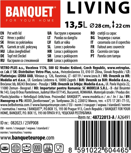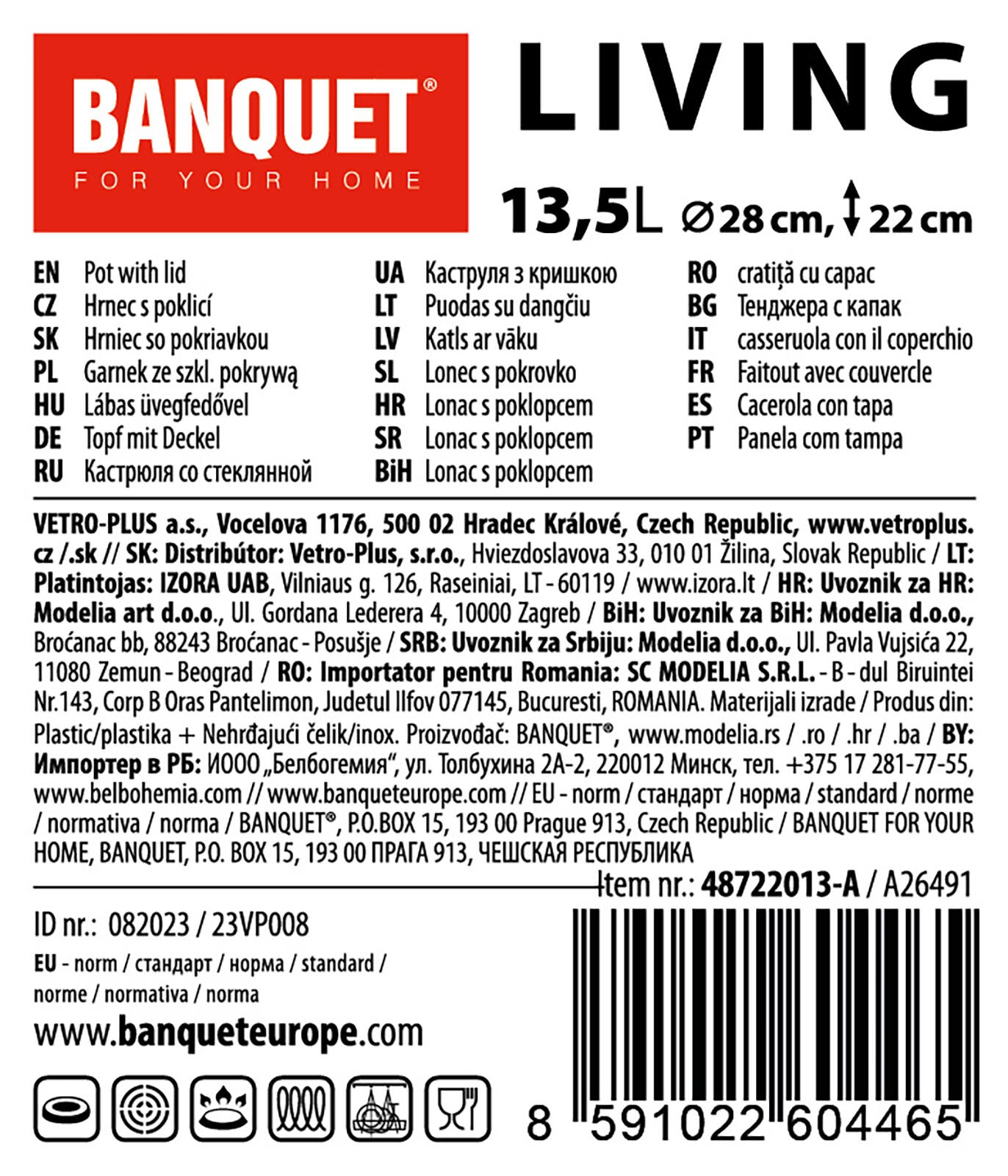 Garnek nierdzewny LIVING to niezawodny pomocnik do codziennego i odświętnego gotowania. Dzięki pojemności 13,5 litra i średnicy 28 cm wygodnie przygotujesz duże porcje dla całej rodziny. Szklana pokrywka z nierdzewnym gałkiem umożliwia kontrolę gotowania bez zbędnej utraty ciepła i pary.