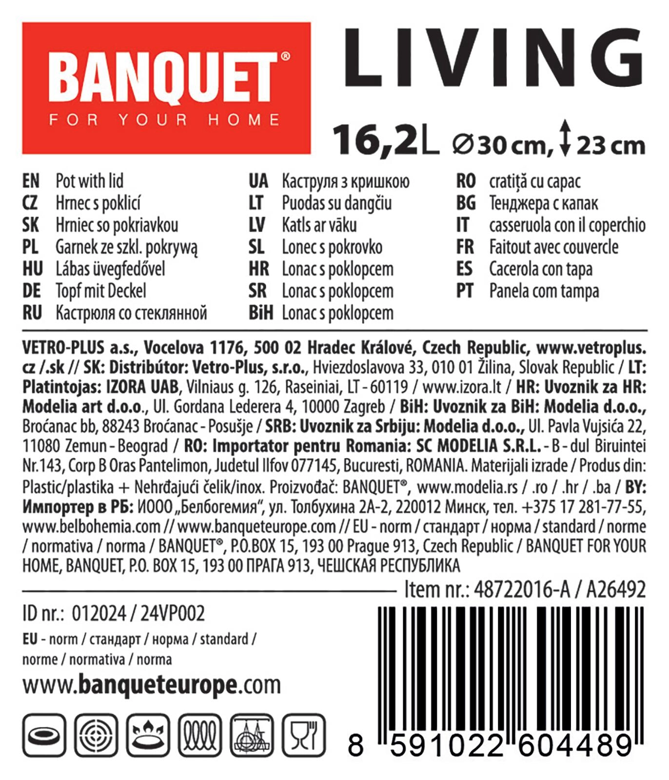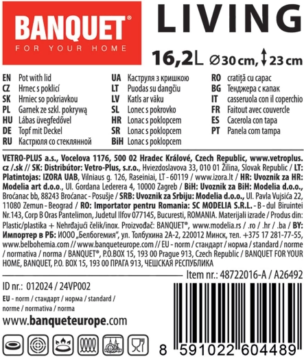 Garnek LIVING ze stali nierdzewnej łączy profesjonalną pojemność 16,2 l z ponadczasowym designem. Szklana pokrywka umożliwia wygodną kontrolę gotowania bez zbędnej utraty ciepła i pary. Dzięki wytrzymałemu materiałowi ze stali nierdzewnej garnek jest praktyczny do codziennego użytku i łatwy w utrzymaniu.