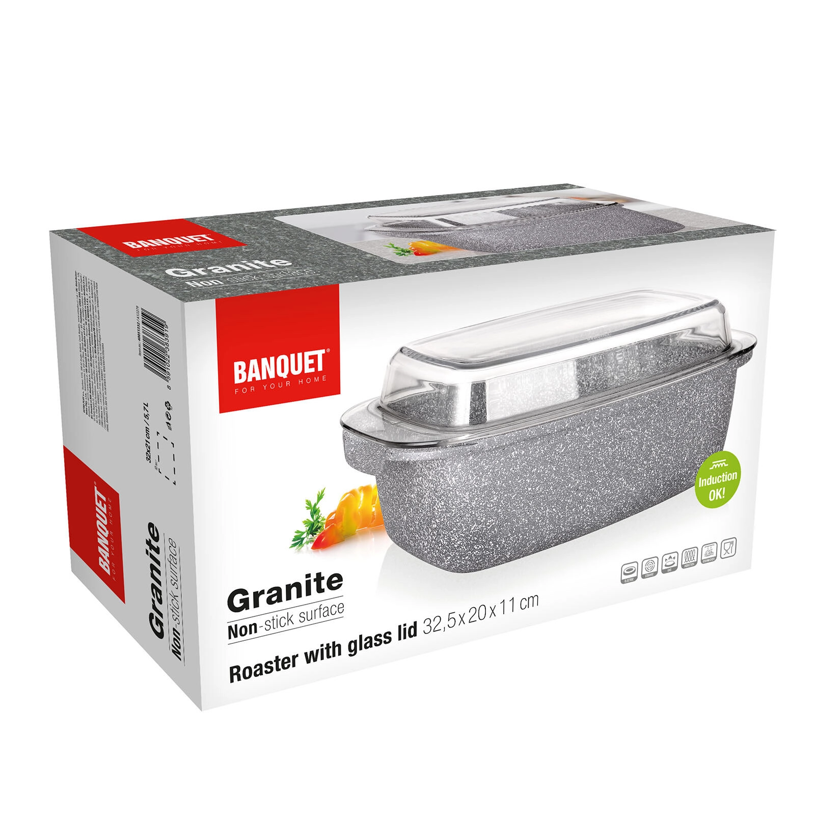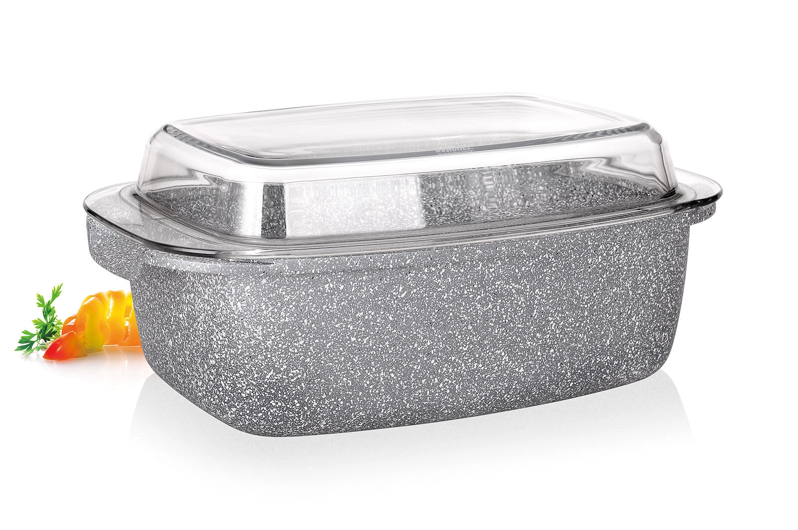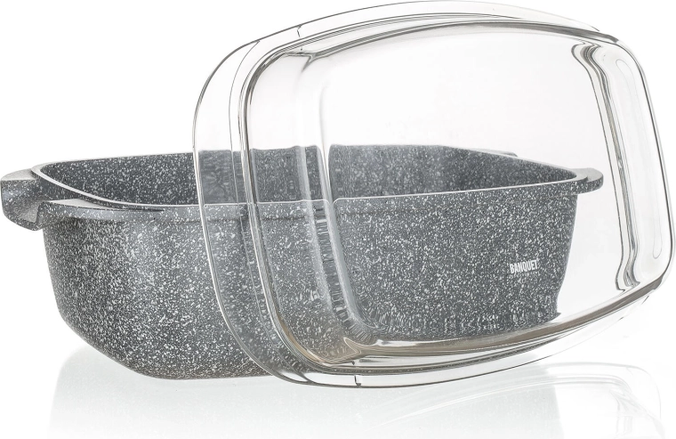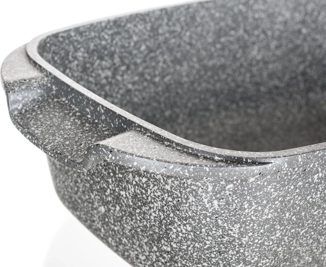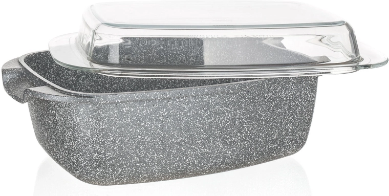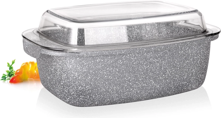 Solidna brytfanna o pojemności 5,7 l z granitowym wyglądem jest idealna do pieczenia mięsa, warzyw i zapiekanek. Dzięki nieprzywierającej, 2‑warstwowej powłoce potrawy się nie przypalają, a forma jest łatwa w utrzymaniu. Szklana pokrywa umożliwia kontrolę wizualną i pomaga zatrzymać ciepło oraz soki wewnątrz.