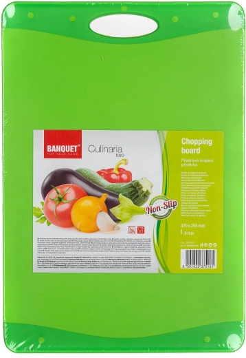 Praktyczna deska do krojenia w wersji DUO łączy dwa odcienie zieleni oraz elementy antypoślizgowe dla pewności podczas pracy. Dzięki wysokiej jakości plastiku jest trwała, delikatna dla ostrzy i łatwa w utrzymaniu – idealna do każdej kuchni.
