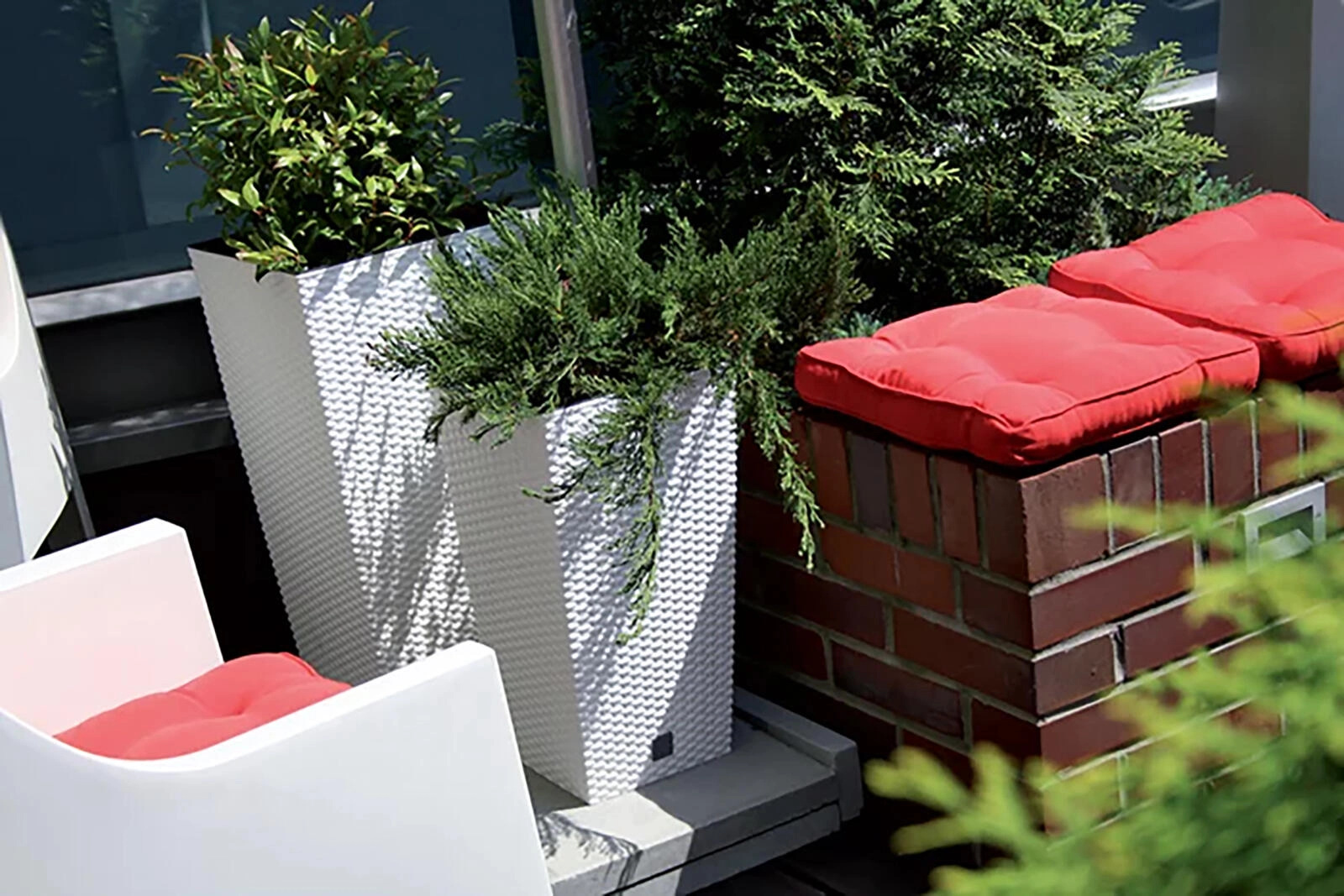 Lekki i wytrzymały materiał ułatwia przenoszenie, a jednocześnie donica zachowuje stabilność. Dwie oddzielne pojemności (wewnętrzna donica i zewnętrzna osłonka) zapewniają wygodne sadzenie i łatwą pielęgnację.