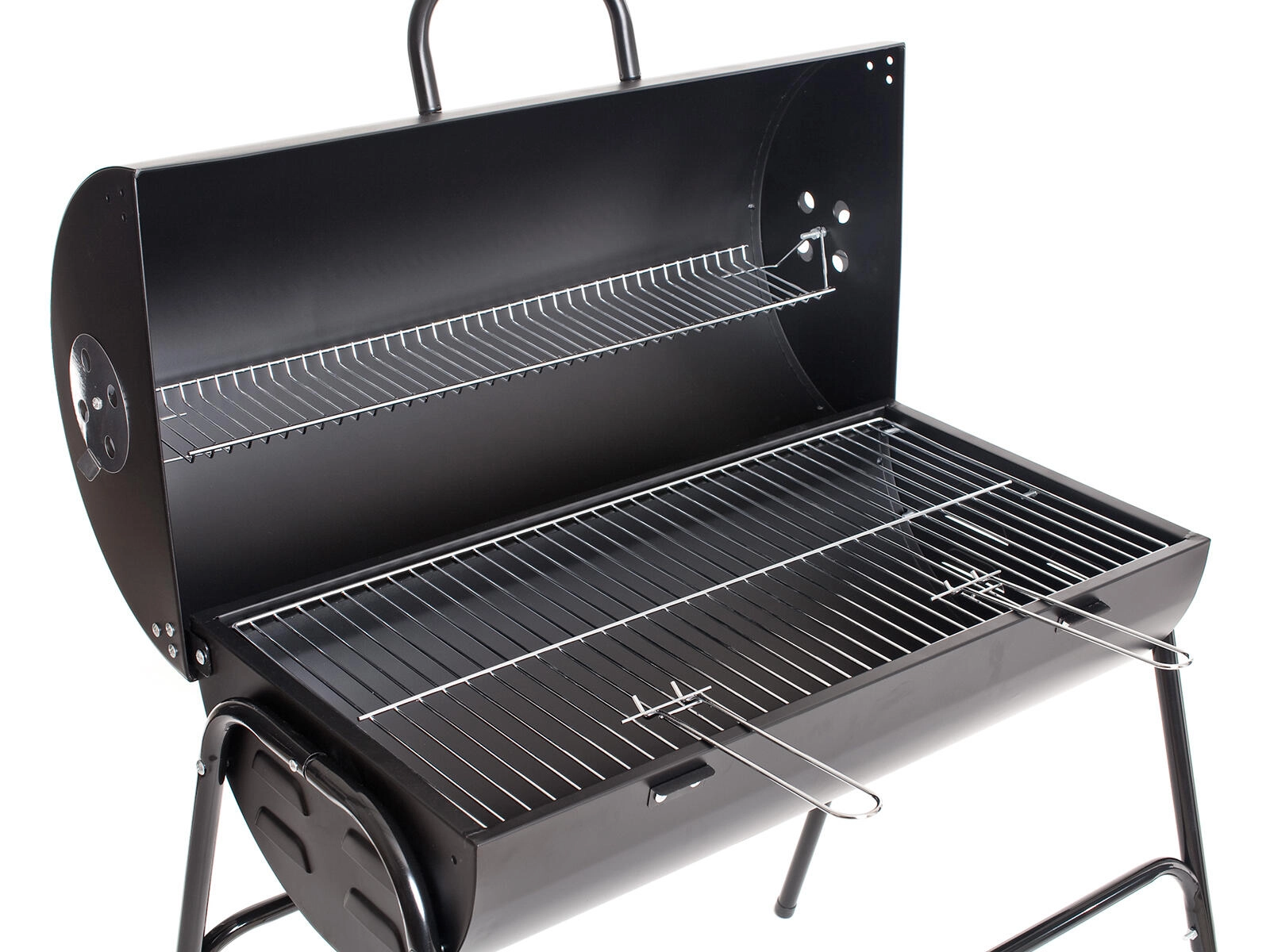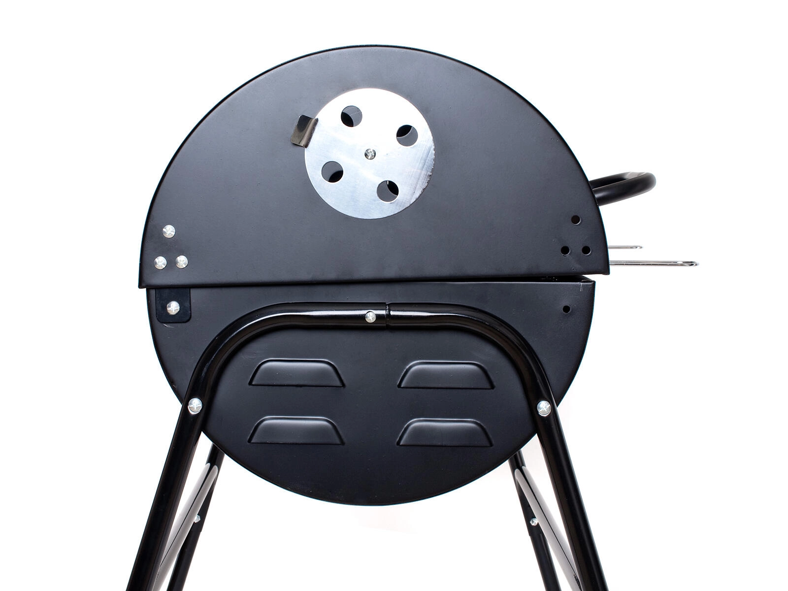 Solidny ogrodowy grill na węgiel drzewny Rancher jest idealny do gotowania na świeżym powietrzu w ogrodzie, na działce oraz podczas biwakowania. Oferuje przestronną powierzchnię grillowania z dwoma rusztami – głównym i górną półką podgrzewającą – z chromowanej stali, zapewniając równomierne dopiekanie i utrzymanie temperatury. Dzięki prostej, lecz wytrzymałej konstrukcji grill jest stabilny, łatwy w obsłudze i umożliwia precyzyjną regulację przepływu powietrza za pomocą bocznych wentylacji. Wbudowany termometr w pokrywie pomaga kontrolować właściwą temperaturę do grillowania i delikatnego wędzenia.
