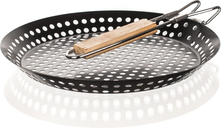 Dzięki składanej drewnianej rączce z metalową ramą patelnia jest łatwa w przechowywaniu i bezpieczna w obsłudze nawet nad rozgrzanym grillem. To świetny wybór do przygotowywania mniejszych lub delikatniejszych składników, które w przeciwnym razie mogłyby wpaść przez ruszt.