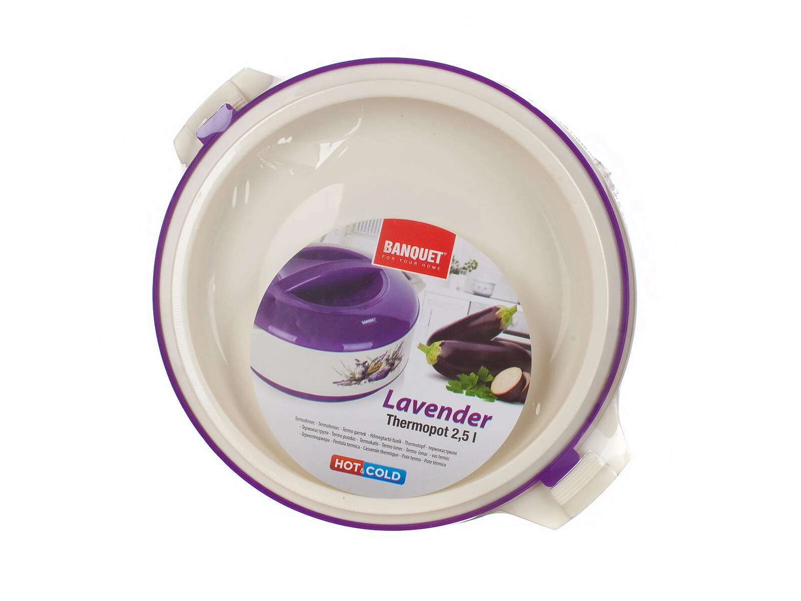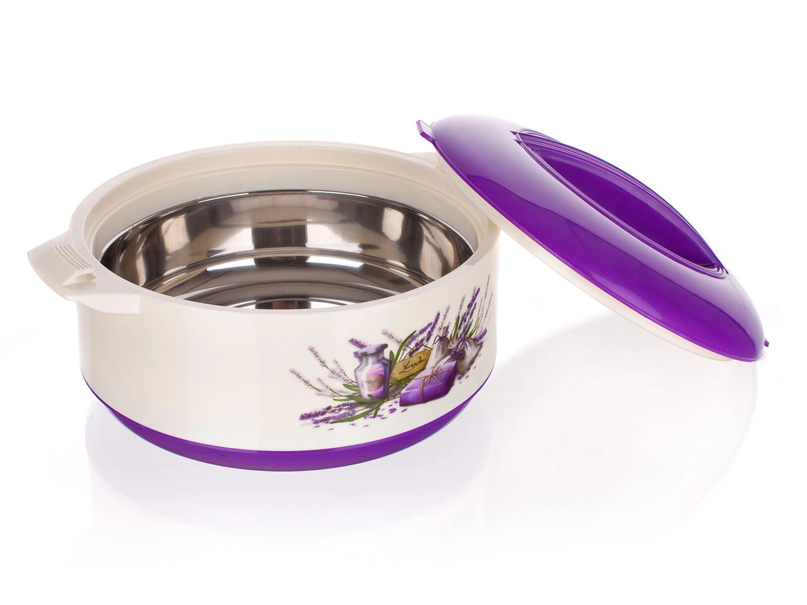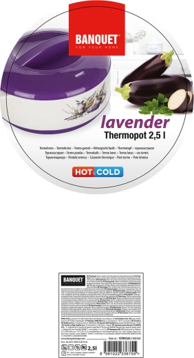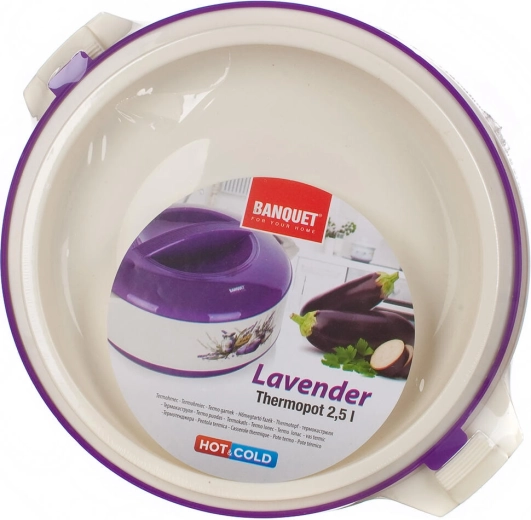 Termomisa LAVENDER o pojemności 2,5 l to praktyczny pomocnik do codziennego gotowania i uroczystego serwowania. Podwójna ścianka z wypełnieniem z pianki PUR oraz wysokiej jakości wkład ze stali nierdzewnej niezawodnie utrzymują temperaturę potraw – zarówno zup, sosów, jak i sałatek. Elegancki design z lawendowym motywem doskonale pasuje do każdej kuchni.