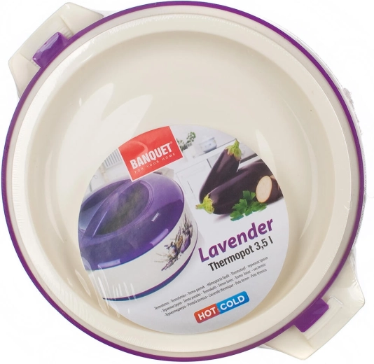 Termomisa Lavender 3,5 l to niezawodny pomocnik w każdej kuchni. Dzięki połączeniu wewnętrznego wkładu ze stali nierdzewnej i wypełnienia z pianki PUR skutecznie utrzymuje temperaturę potraw – zarówno gorących, jak i zimnych. Wytrzymałe tworzywo z motywem lawendy dodaje serwowaniu przyjemnego wyglądu, a pokrywka zapewnia bezpieczne przenoszenie bez rozlewania.