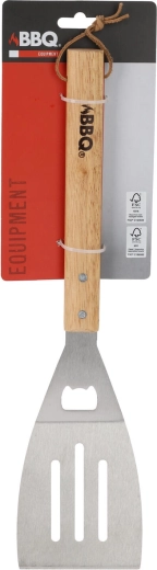Praktyczna łopatka do grilla o długości 46 cm do łatwego i bezpiecznego obracania mięsa, burgerów i ryb. Połączenie stali nierdzewnej, drewnianej rączki i antypoślizgowej gumy gwarantuje wytrzymałość, wygodny chwyt i precyzyjną manipulację przy każdym grillu.
