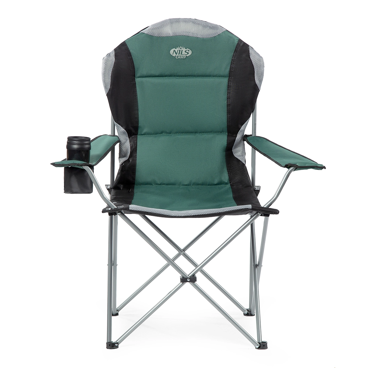 Składane krzesło NILS Camp zostało zaprojektowane z myślą o maksymalnym komforcie i trwałości w plenerze. Solidne stalowe profile o średnicy 16 mm gwarantują stabilność, a dwuwarstwowy, wyściełany materiał Oxford 600D z oddychającymi panelami dba o wygodę nawet podczas dłuższego siedzenia. Nie brak tu antypoślizgowych stopek oraz zintegrowanego uchwytu na napój, abyś miał orzeźwienie zawsze pod ręką.