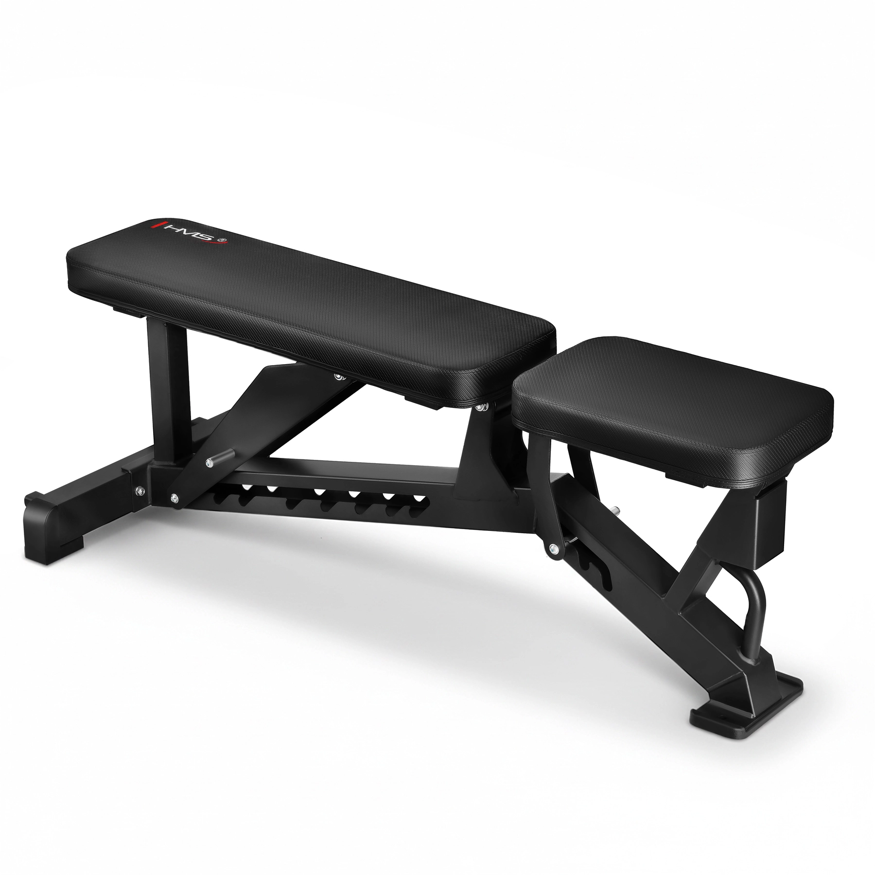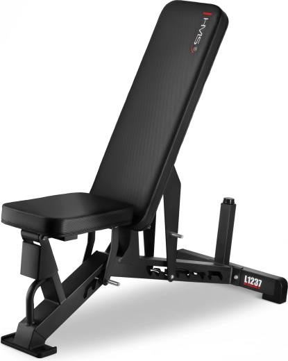 HMS L1237 to regulowana ławka treningowa zaprojektowana do efektywnego treningu siłowego z hantlami i sztangą. Szeroki zakres regulacji oparcia od 94° do 180° oraz 3 poziomy nachylenia siedziska pozwalają precyzyjnie ukierunkować trening klatki piersiowej, pleców i barków – w płaszczyźnie poziomej, skośnej i pionowej. Grube wyściełanie i stabilna podstawa gwarantują wygodę i bezpieczeństwo nawet przy większych obciążeniach.