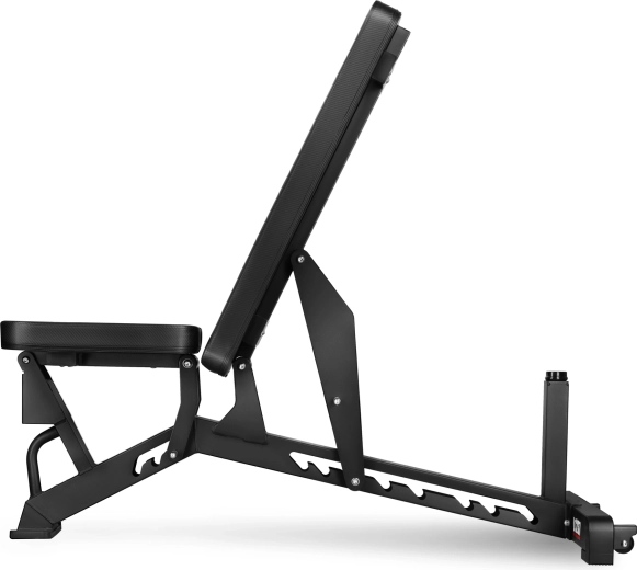 8 pozycji oparcia (94°–180°) i 3 pozycje siedziska (-12°–0°) umożliwiają ukierunkowanie treningu klatki piersiowej, pleców i barków w pozycji poziomej, skośnej i pionowej z optymalną stabilnością.