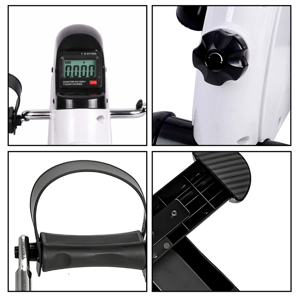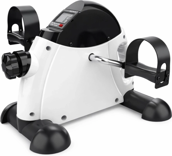 Kompaktowy mini rowerek do ćwiczeń w domu umożliwia wygodny trening nóg i rąk o każdej porze dnia. Oferuje płynną i cichą pracę, regulowany opór oraz wyświetlacz LCD do monitorowania czasu, dystansu, prędkości i kalorii. Dzięki antypoślizgowym pedałom i stabilnej konstrukcji idealnie sprawdza się do rehabilitacji, poprawy kondycji oraz codziennej aktywności podczas siedzenia w domu lub biurze.