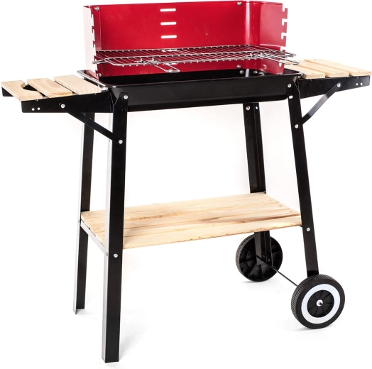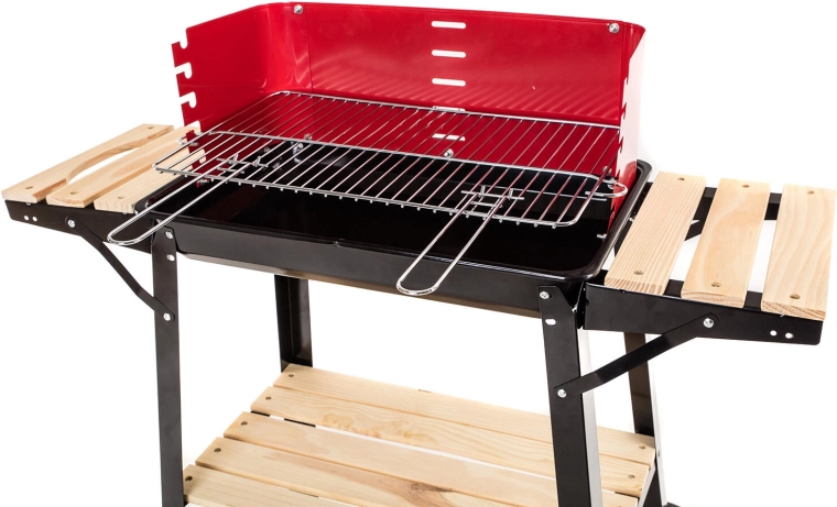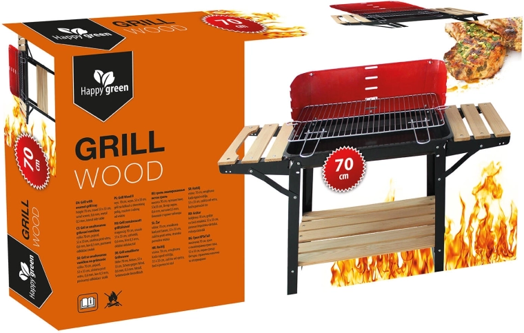 Praktyczne wyposażenie, w tym osłona przeciwwiatrowa, poprawia ciąg i stabilność żaru. Dwie boczne półki zapewniają dużo miejsca na akcesoria i składniki, a dolna drewniana półka świetnie sprawdzi się do przechowywania węgla lub przyborów do serwowania. Dzięki przemyślanej konstrukcji grill nadaje się na balkon, taras i do ogrodu.
