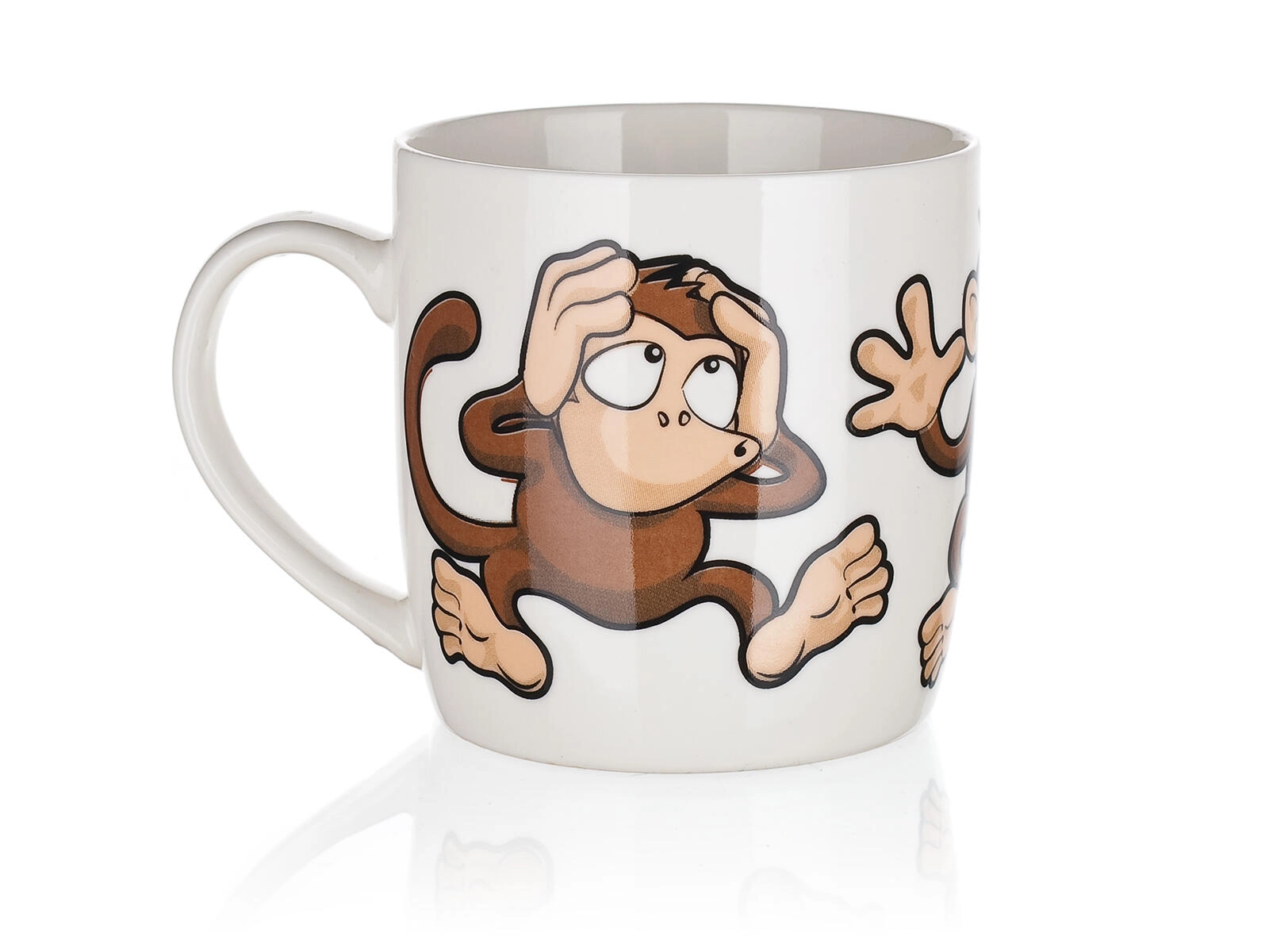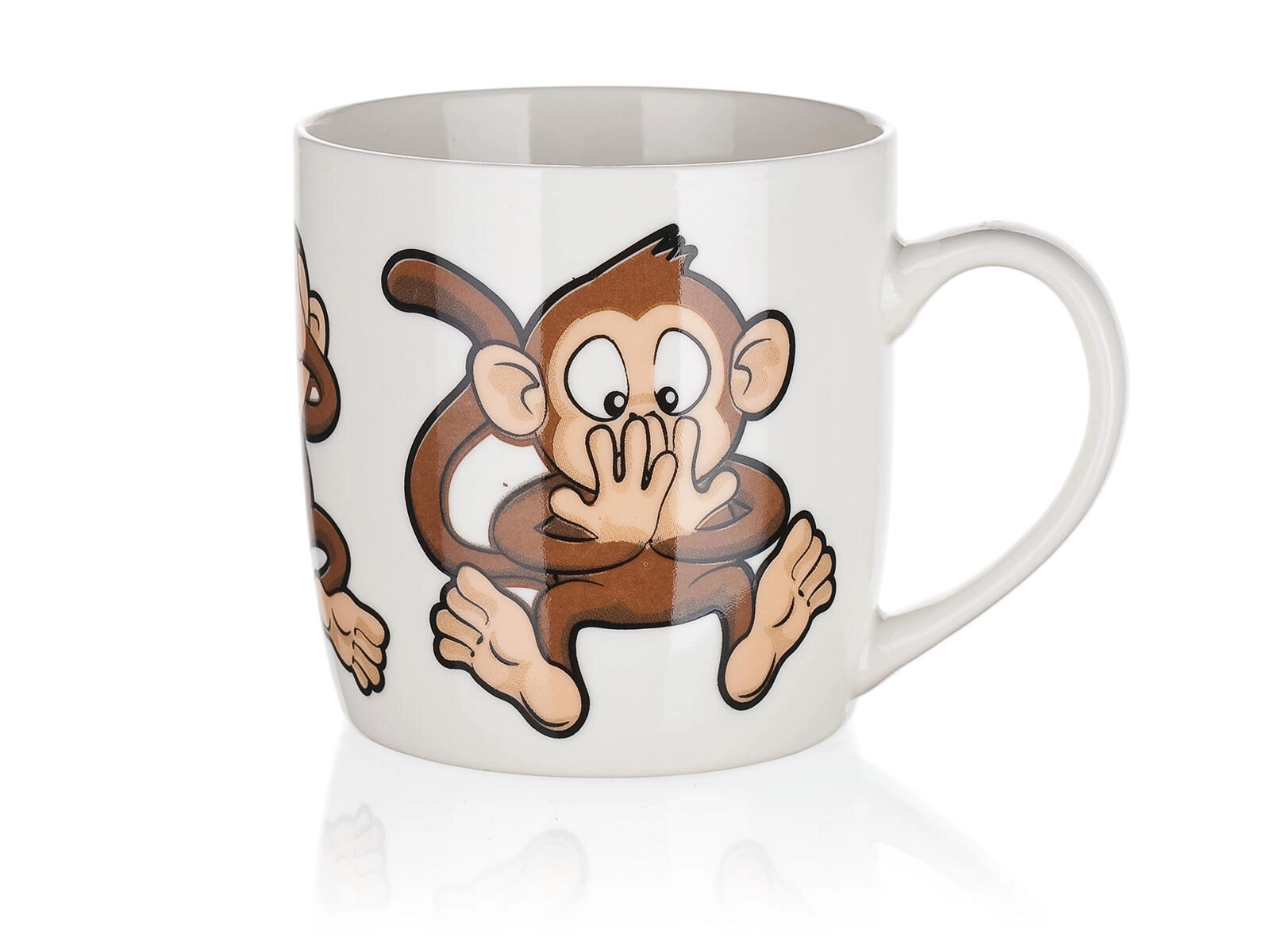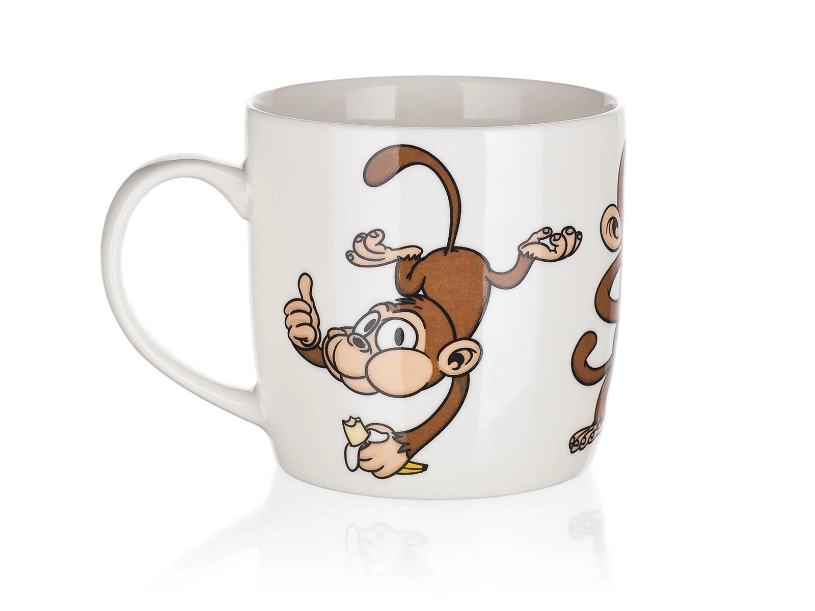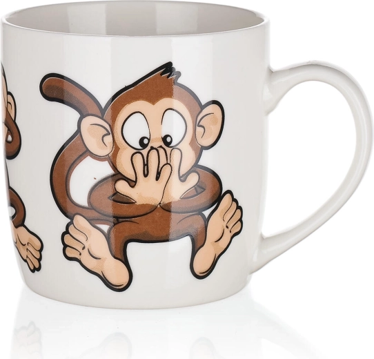 Uroczy ceramiczny kubek o pojemności 320 ml z figlarnym motywem małpek ucieszy dzieci i dorosłych. Idealny do codziennego użytku – na kawę, herbatę lub kakao. Możesz wybierać z miksu wesołych dekorów, każdy z błyszczącą glazurą i wygodnym uchem. Odpowiedni do gorących i zimnych napojów i świetny jako prezent.
