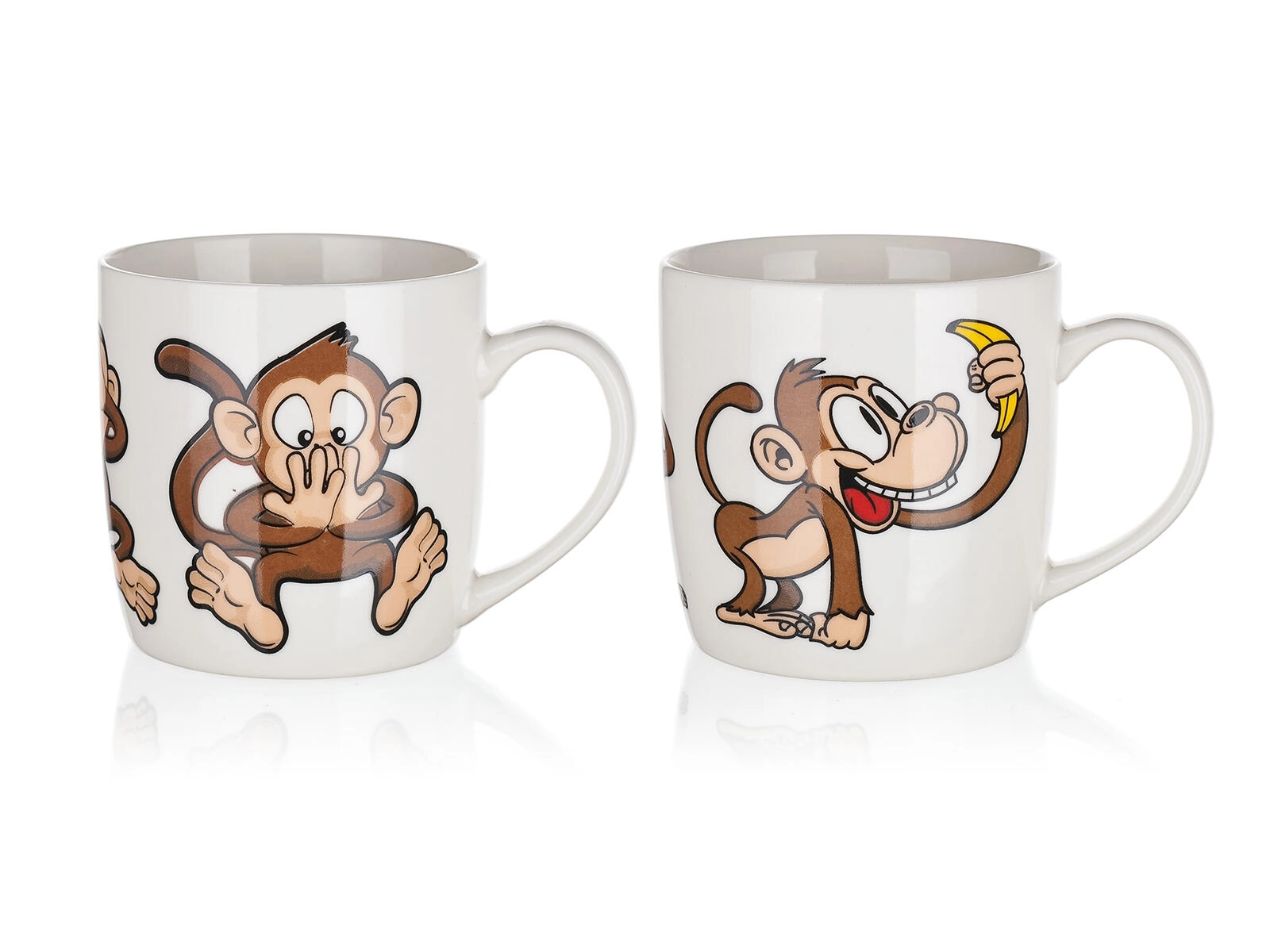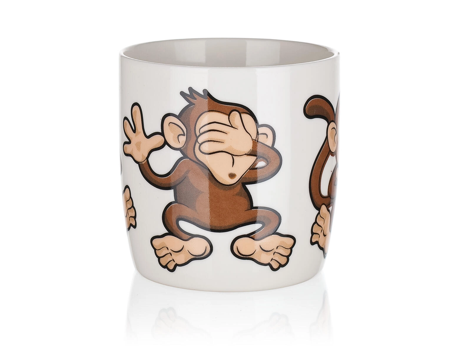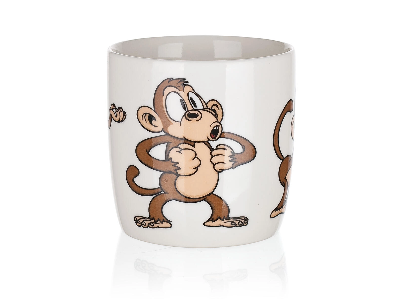 Uroczy ceramiczny kubek o pojemności 320 ml z figlarnym motywem małpek ucieszy dzieci i dorosłych. Idealny do codziennego użytku – na kawę, herbatę lub kakao. Możesz wybierać z miksu wesołych dekorów, każdy z błyszczącą glazurą i wygodnym uchem. Odpowiedni do gorących i zimnych napojów i świetny jako prezent.