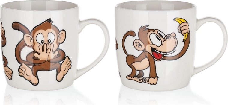 Wesołe motywy małpek w miksie dekorów dodadzą twojej przerwie na kawę czy herbatę dobrego nastroju i sprawdzą się także jako prezent.