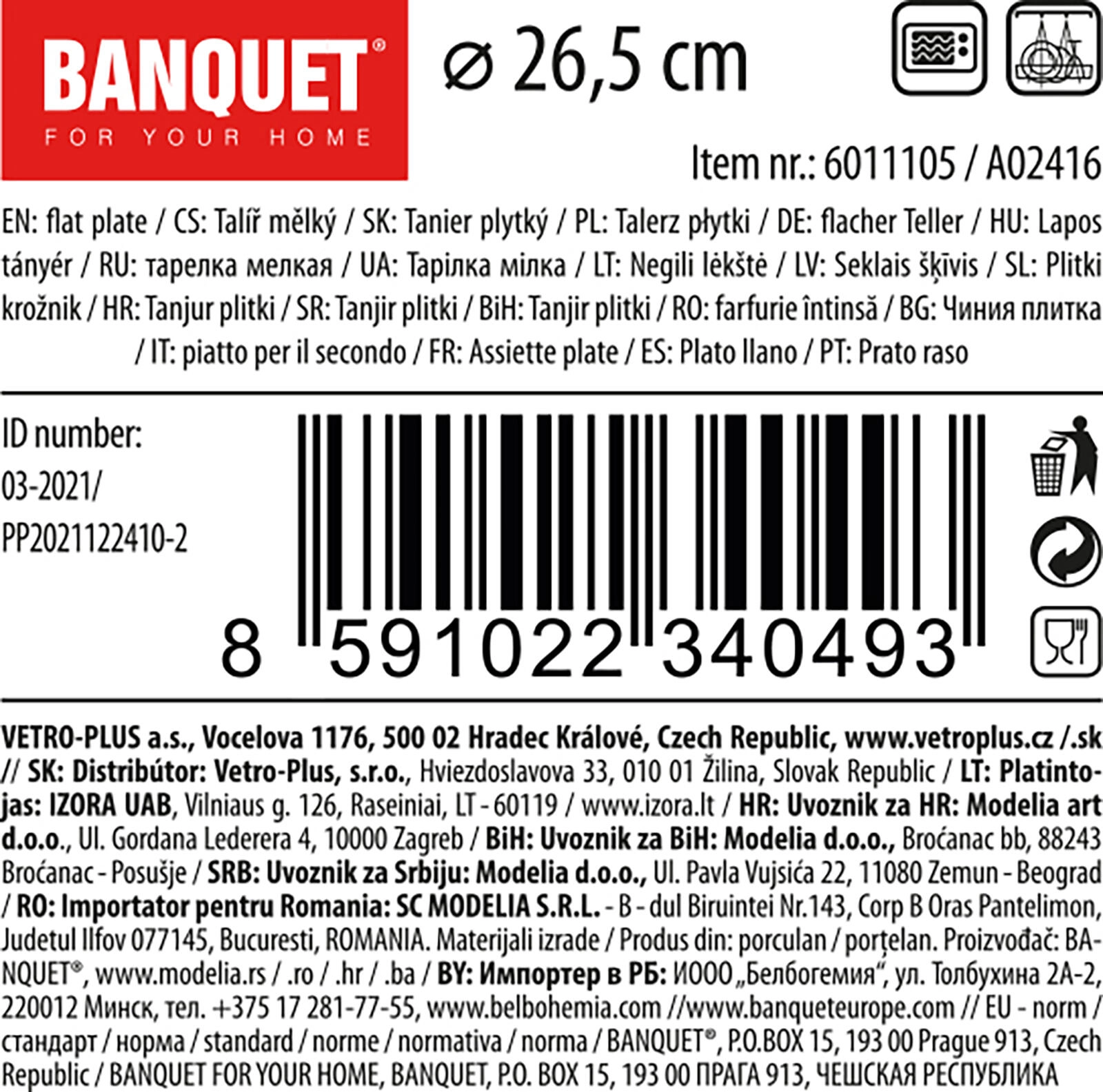 Uniwersalny porcelanowy płaski talerz 26,5 cm w czystej bieli jest idealny do codziennego użytku przy stole oraz do gastronomii. Odpowiedni do kuchenki mikrofalowej i zmywarki, co ułatwia pielęgnację i oszczędza czas.