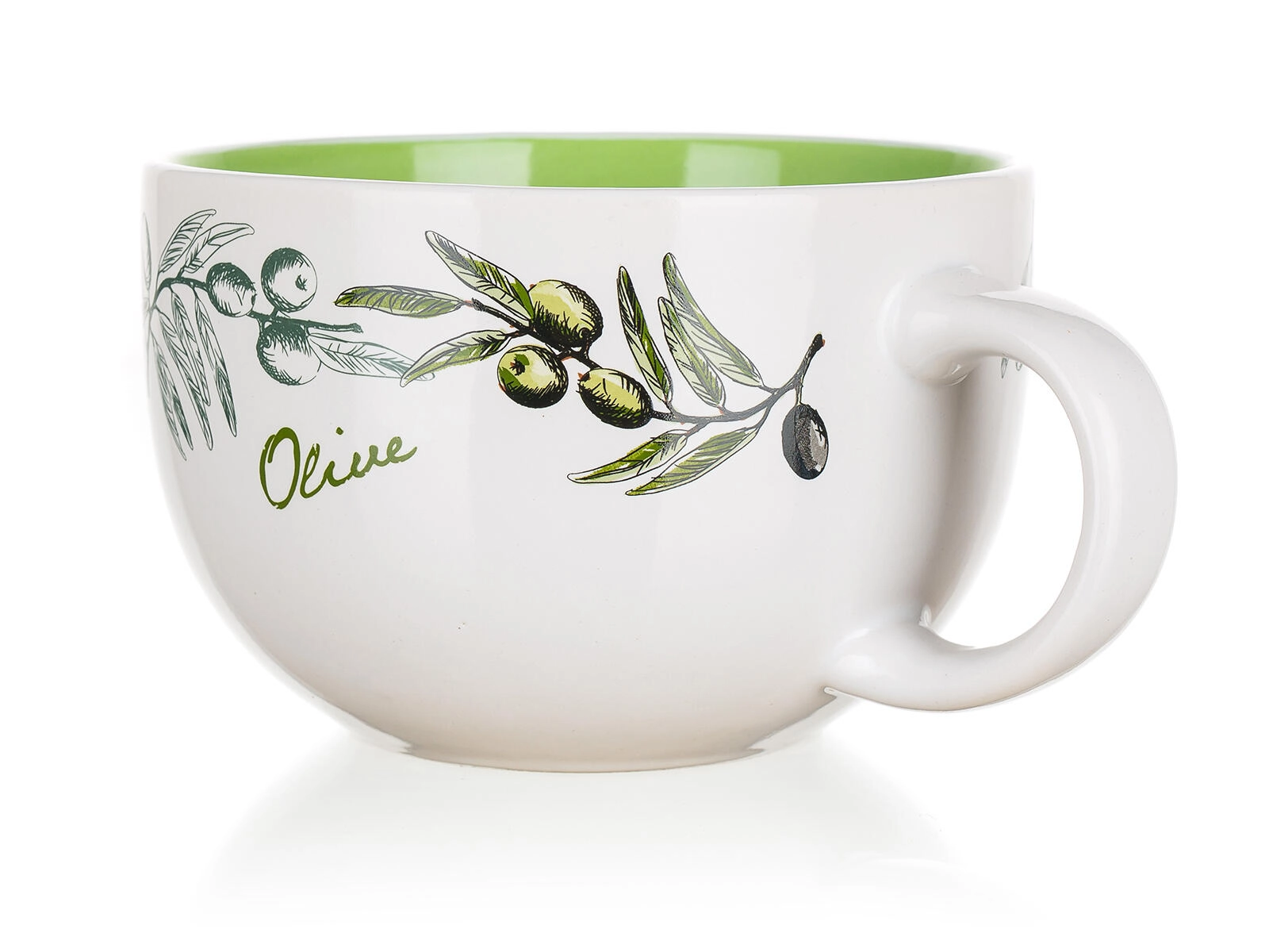 Duży ceramiczny kubek z motywem oliwek i pojemnością 660 ml jest idealny do codziennego użytku. Ciesz się ulubionymi napojami na ciepło i na zimno w dobrym stylu – praktyczna pojemność, trwała ceramika i dekor z oliwkami tworzą przyjemną atmosferę przy stole.