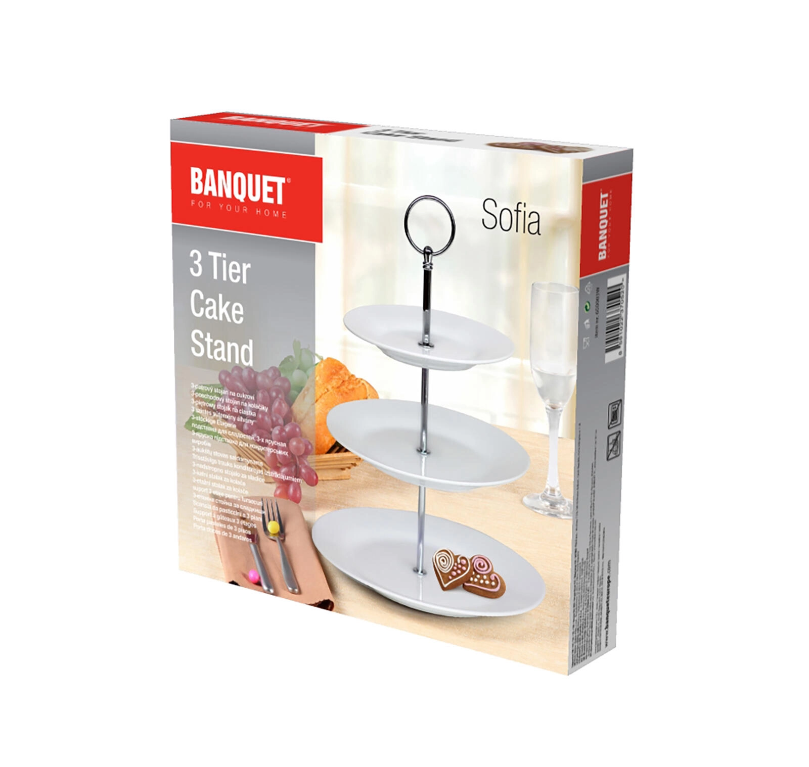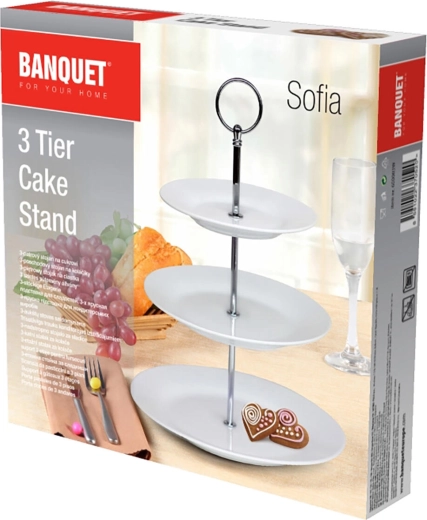 Elegancki trzypoziomowy półmisek Sofia z wysokiej jakości porcelany w białym kolorze jest idealny do serwowania ciasteczek, mini torcików oraz owoców. Dzięki trzem okrągłym talerzom o różnych średnicach oferuje dużo miejsca, stabilną konstrukcję i stylowy wygląd na każdy odświętny stół i domowe przyjęcie.