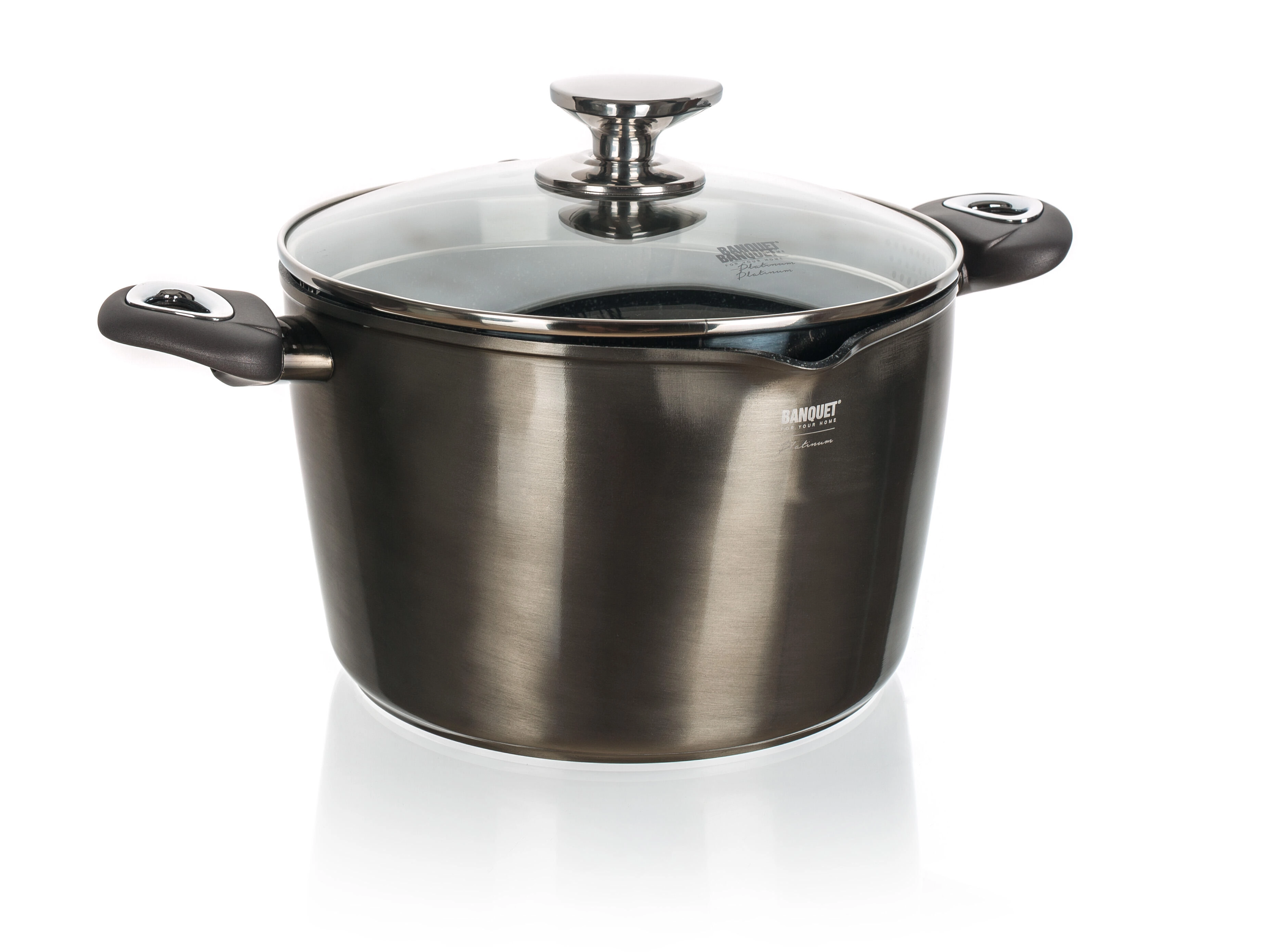 - Odlewowy aluminiowy garnek ze szklaną pokrywką