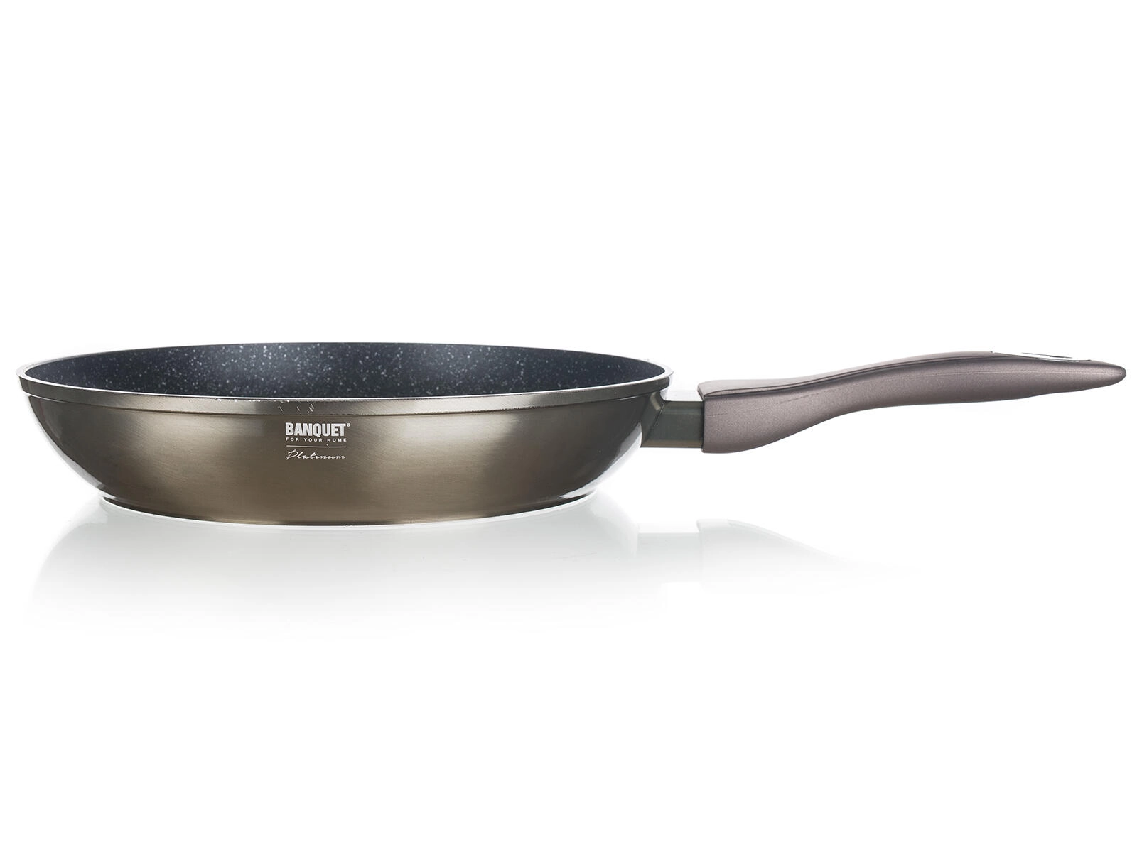 Patelnia METALLIC PLATINUM wykonana jest z odlewanego kucanego aluminium, co zapewnia doskonałą stabilność, odporność na uderzenia i minimalne ryzyko odkształceń. Nieprzywierająca, nakrapiana powłoka jest wyjątkowo twarda i odporna na zarysowania, dzięki czemu składniki nie przywierają, a czyszczenie trwa chwilę.