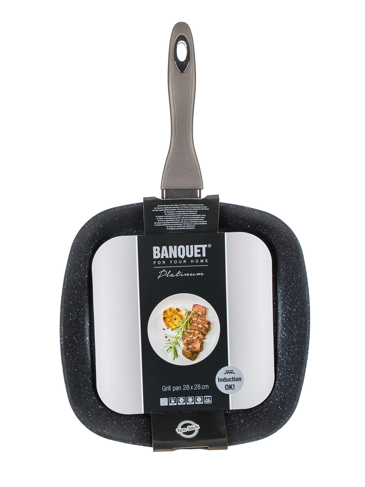 Pełne dno indukcyjne umożliwia użycie na wszystkich typach kuchenek, w tym indukcji. Ergonomiczna rączka soft‑touch zapewnia pewny chwyt, a masywna konstrukcja jest odporna na uderzenia i odkształcenia. Stylowy karbonowo‑metaliczny wygląd dopełni Twoją kuchnię i podkreśli premiumowy charakter linii METALLIC PLATINUM.