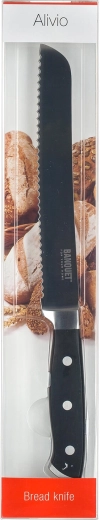 Praktyczny nóż do chleba ALIVIO o długości 33,5 cm z ostrzem 20 cm z wysokiej jakości stali nierdzewnej jest idealny do codziennego użytku. Dzięki ząbkowanemu ostrzu łatwo kroi chrupiącą skórkę i miękki miąższ, zapewniając czyste i równe plastry. Wytrzymała stal nierdzewna, ząbkowane ostrze do pieczywa oraz wygodne krojenie bez zgniatania czynią z tego noża niezawodnego pomocnika w każdej kuchni.