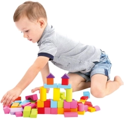 W wiaderku znajdziesz 100 kolorowych klocków o różnych kształtach, które zajmą dzieci na długie godziny. Pokrywka wiaderka służy jako zabawka do wkładania, która pomoże twojemu dziecku nauczyć się rozpoznawania różnych kształtów i poprawiać małą motorykę.