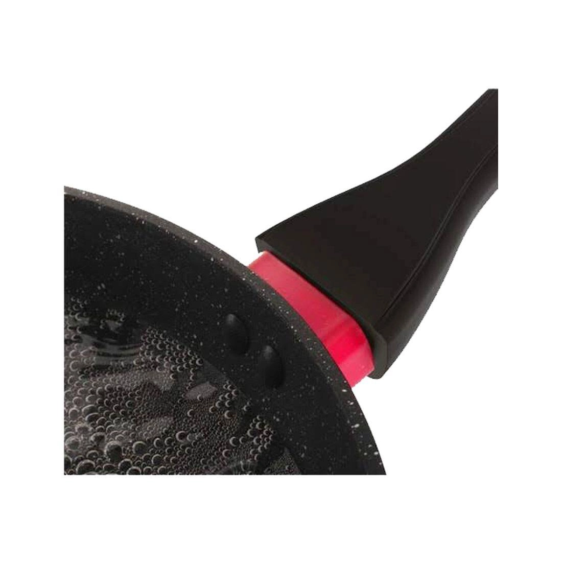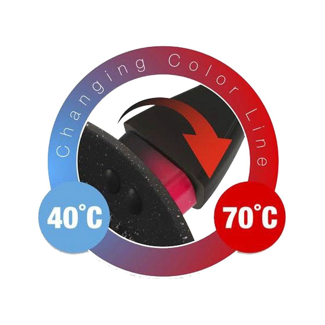 Unikalny pierścień temperaturowy nad rączką stopniowo zmienia kolor z czarnego na intensywnie czerwony od 40 °C do 70 °C, dzięki czemu zawsze wiesz, kiedy patelnia jest gotowa do pełnego gotowania. W opakowaniu znajdziesz także ochronną przekładkę w czerwonym kolorze do bezpiecznego przechowywania bez zarysowań.