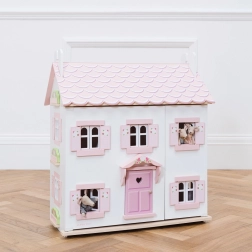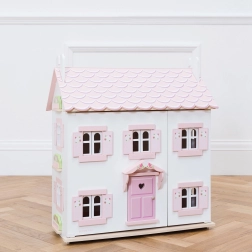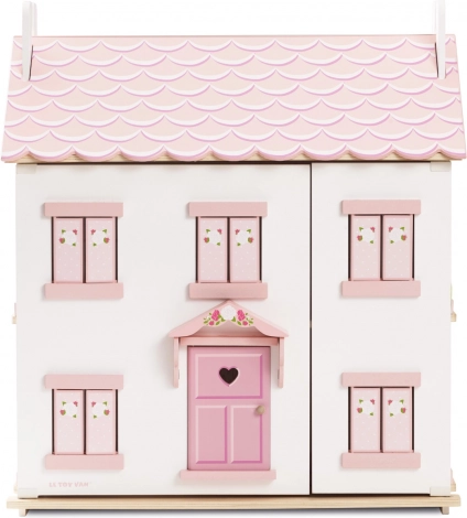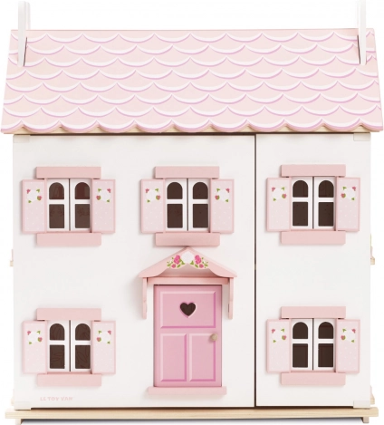Uroczy drewniany domek dla lalek LE TOY VAN Sophie z premiumowej kolekcji Daisylane oferuje trzy piętra zabawy, otwierane okna i okiennice z kwiatowym motywem oraz ręcznie malowane pastelowe detale. Wykonany z drewna FSC, malowany nietoksycznymi farbami na bazie wody i całkowicie bez plastiku – piękny, trwały i zrównoważony prezent, który wspiera wyobraźniową zabawę.