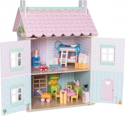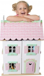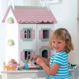 Domek dla lalek Sweetheart Cottage zachwyca detalami – motywami serduszek i kwiatów, pastelowymi tonami oraz przemyślanym układem pomieszczeń. Przednia część całkowicie się otwiera, dzięki czemu dzieci mają wygodny dostęp do wszystkich pokoi, a po uniesieniu części dachu odkryją przytulne poddasze.