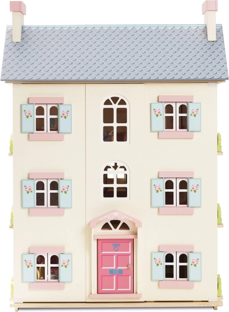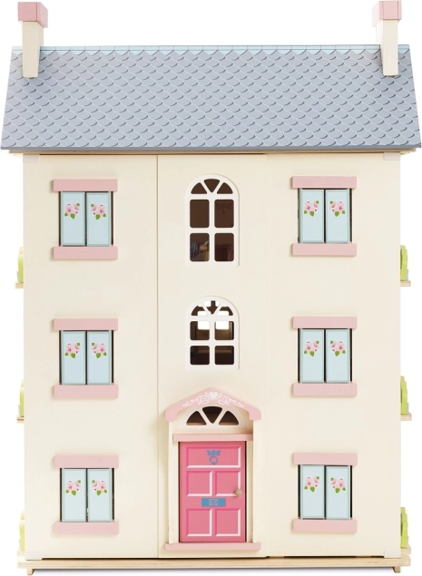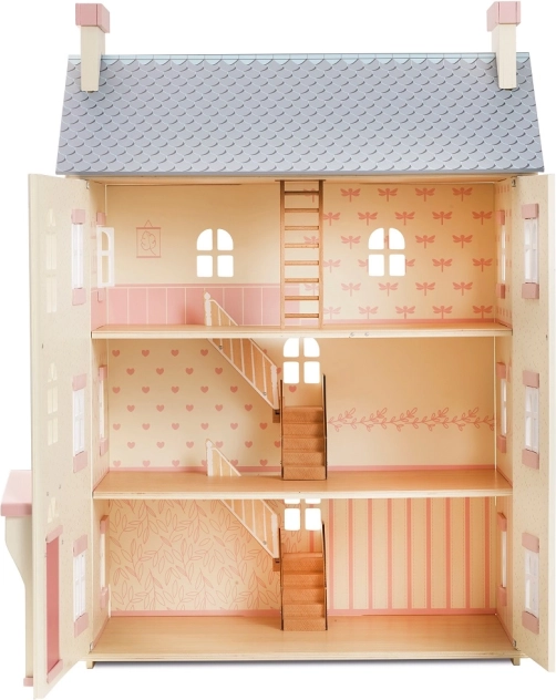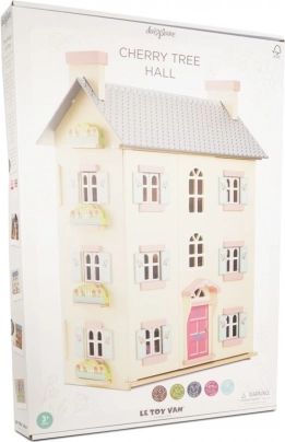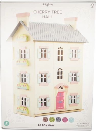 Domek dla lalek Cherry Tree Hall marki LE TOY VAN to ponadczasowy element pokoju dziecięcego. Cztery piętra z indywidualnie dekorowanymi ścianami, drewnianymi schodami i strychem dostępnym po drabince zapraszają do nieskończonych historii. Otwierana fasada i ruchome okiennice dodają realizmu, a różowe drzwi i pastelowe detale tworzą przytulną atmosferę.