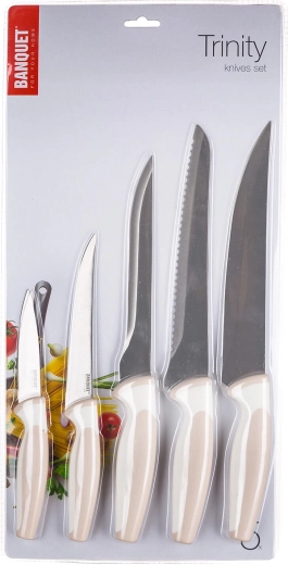 Z tym wszechstronnym zestawem noży będziesz mieć pod ręką idealne narzędzie do każdego zadania. Zestaw obejmuje praktyczne noże (18,5 i 23,5 cm), nóż do porcjowania (32 cm), nóż do wykrawania/odkostniania (30 cm) oraz nóż do chleba (32 cm). Stalowa konstrukcja gwarantuje trwałość i niezawodność w codziennym użytkowaniu.