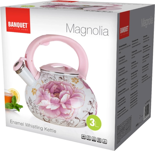 Odkryj połączenie funkcjonalności i stylu. Emaliowany czajnik MAGNOLIA o średnicy 22,5 cm i pojemności 3 litry jest idealny do codziennego gotowania wody na herbatę, kawę i napary ziołowe. Wysokiej jakości emaliowana powłoka jest trwała, łatwa w czyszczeniu i na długo zachowuje olśniewający wygląd z delikatnym kwiatowym motywem.