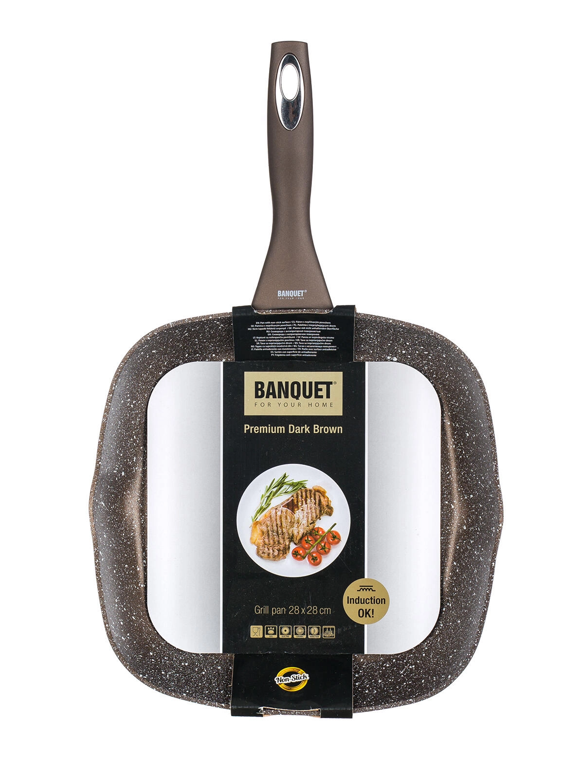 Wymiar 28 × 28 cm zapewnia dużo miejsca do przygotowania większych porcji. Patelnia jest kompatybilna ze wszystkimi typami płyt grzewczych, w tym indukcyjnych, co czyni ją uniwersalnym wyborem do każdej nowoczesnej kuchni. Trwała konstrukcja gwarantuje równomierne nagrzewanie i stabilność podczas gotowania.