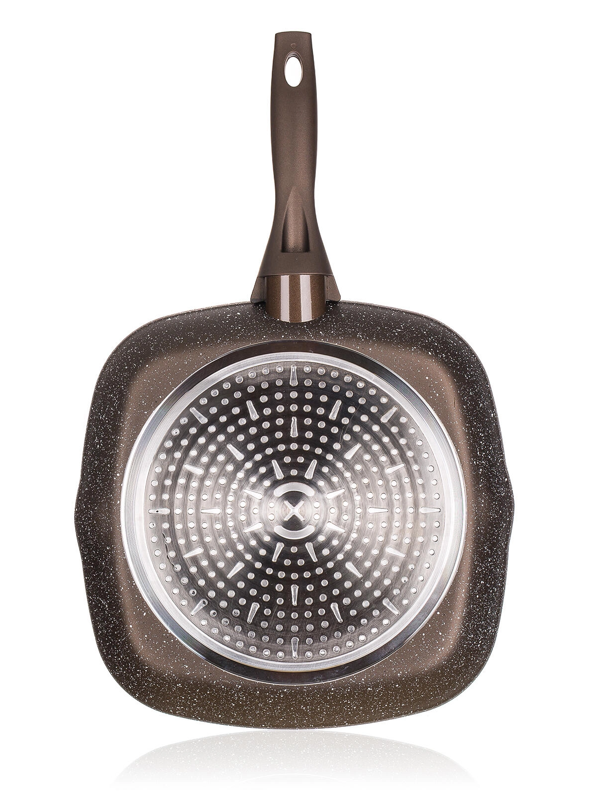Ta solidna patelnia grillowa z kamiennym wykończeniem w kolorze Dark Brown została zaprojektowana do perfekcyjnych rezultatów grillowania w kuchni. Dzięki nieprzywierającej powłoce Dyflon przygotujesz mięso, ryby i warzywa z minimalną ilością oleju i bez przypalania. Wysokie rowki pomagają odprowadzać nadmiar tłuszczu i tworzą atrakcyjne paski grillowe.