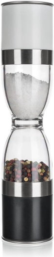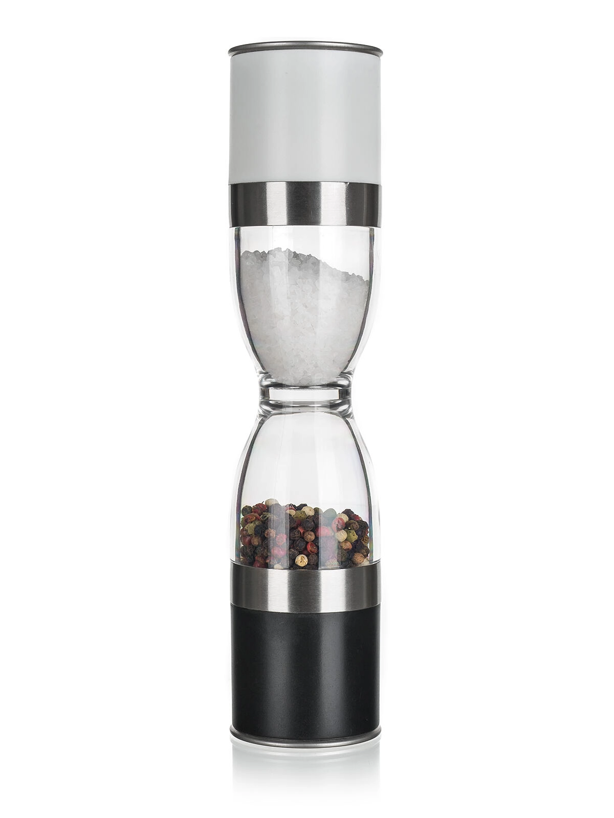 Odkryj wygodę 2w1: jedno narzędzie do mielenia soli i pieprzu z każdej strony. Przezroczyste komory od razu pokazują zawartość i jej ilość, dzięki czemu dokładnie wiesz, kiedy uzupełnić. Wygląd ze stali nierdzewnej świetnie wpasuje się w nowoczesną kuchnię, a ceramiczny mechanizm zapewni równomierne i długotrwałe mielenie.