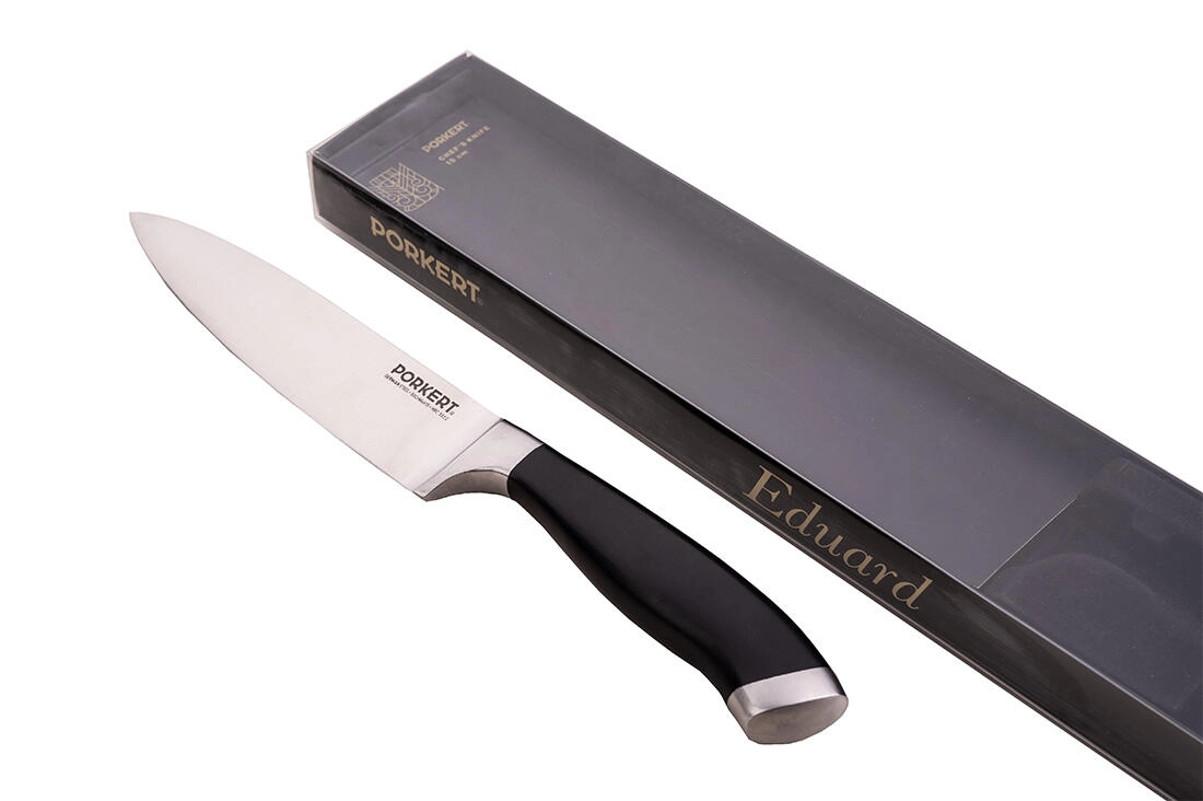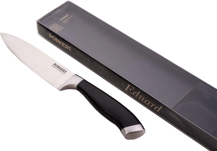 Uniwersalny nóż kuchenny EDUARD z długością ostrza 15 cm zapewnia precyzyjne i wygodne krojenie. Dzięki stali X50CrMoV15 i twardości HRC 55 ±2 ostrze jest ostre i odporne, a ergonomiczna, polerowana rękojeść doskonale leży w dłoni, zapewniając bezpieczne i komfortowe użytkowanie.