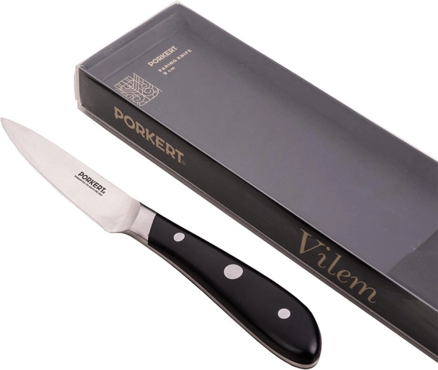 Nóż do wykrawania Vilem to idealny pomocnik do codziennej pracy w kuchni. Krótkie ostrze o długości 9 cm ze stali X50CrMoV15 (ISO 1.4116) oferuje doskonały balans ostrości i odporności, dzięki czemu z łatwością poradzi sobie z krojeniem, oczyszczaniem i dekorowaniem owoców oraz warzyw.