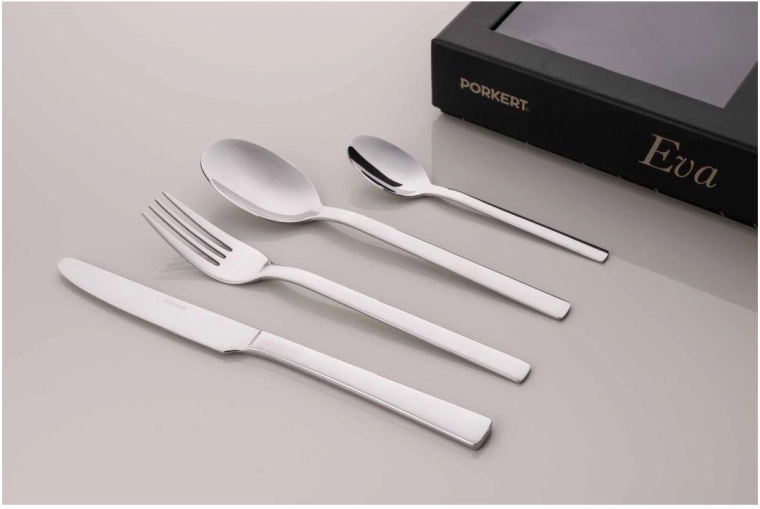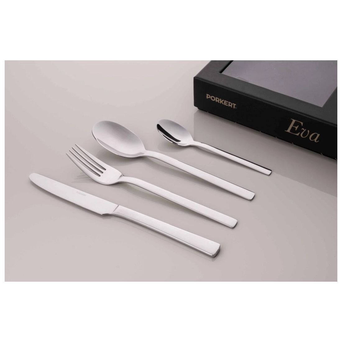 Elegancki zestaw sztućców Eva wyróżnia się prostotą i czystym designem. Zawiera 24 elementy z wysokiej jakości stali nierdzewnej, idealny do rodzinnych posiłków i codziennego użytku.