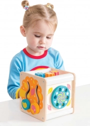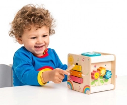 Wesoła i edukacyjna kostka motoryczna Le Toy Van Petilou z naturalnego drewna z barwnymi elementami wspomaga imaginacyjną zabawę oraz rozwój umiejętności poznawczych u dzieci. Wykonana z zrównoważonego drewna kauczukowego i malowana nietoksycznymi farbami, gwarantuje bezpieczną i ekologiczną zabawkę.