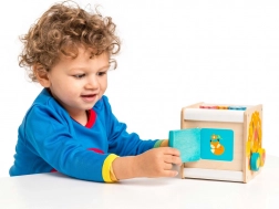 Stymuluje motorykę małą i rozwija umiejętności poznawcze dzieci dzięki interaktywnym elementom.