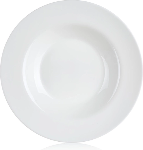 Śnieżnobiały wygląd i szeroki rant dodają serwowaniu elegancji i pasują do każdego zestawu naczyń.