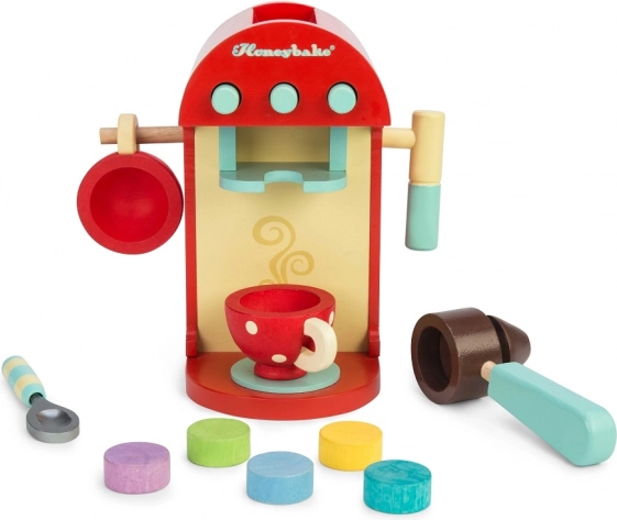 Ten wysokiej jakości drewniany ekspres do kawy zapewnia dzieciom autentyczne wrażenia z przygotowywania kawy. Kolorowe kapsuły można umieścić w dźwigni i „zaparzyć” napój bezpośrednio do malowanego kubeczka; nie brakuje też spieniacza do mleka i łyżeczki. Kapsuły wygodnie przechowasz w otworze w górnej części ekspresu, dzięki czemu wszystko jest pod ręką.