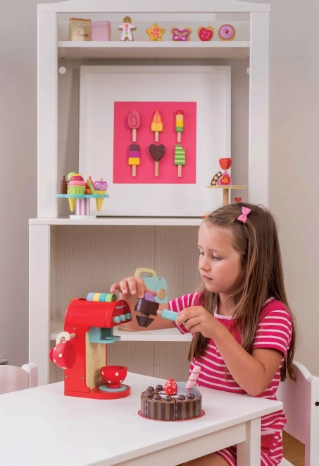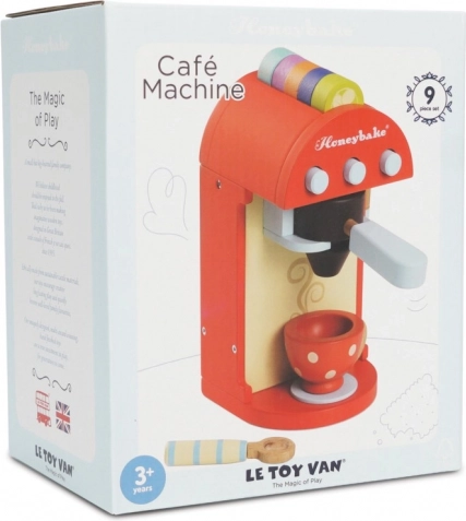 Stylowy dziecięcy ekspres do kawy z kolekcji Honeybake od LE TOY VAN ucieszy małych baristów. Oferuje realistyczną zabawę w kawiarnię z drewnianymi kapsułami, dźwignią, spieniaczem do mleka i uroczym kubeczkiem. Wykonany z zrównoważonego drewna FSC, ręcznie domalowywany nietoksycznymi farbami na bazie wody dla bezpiecznej i kreatywnej zabawy.