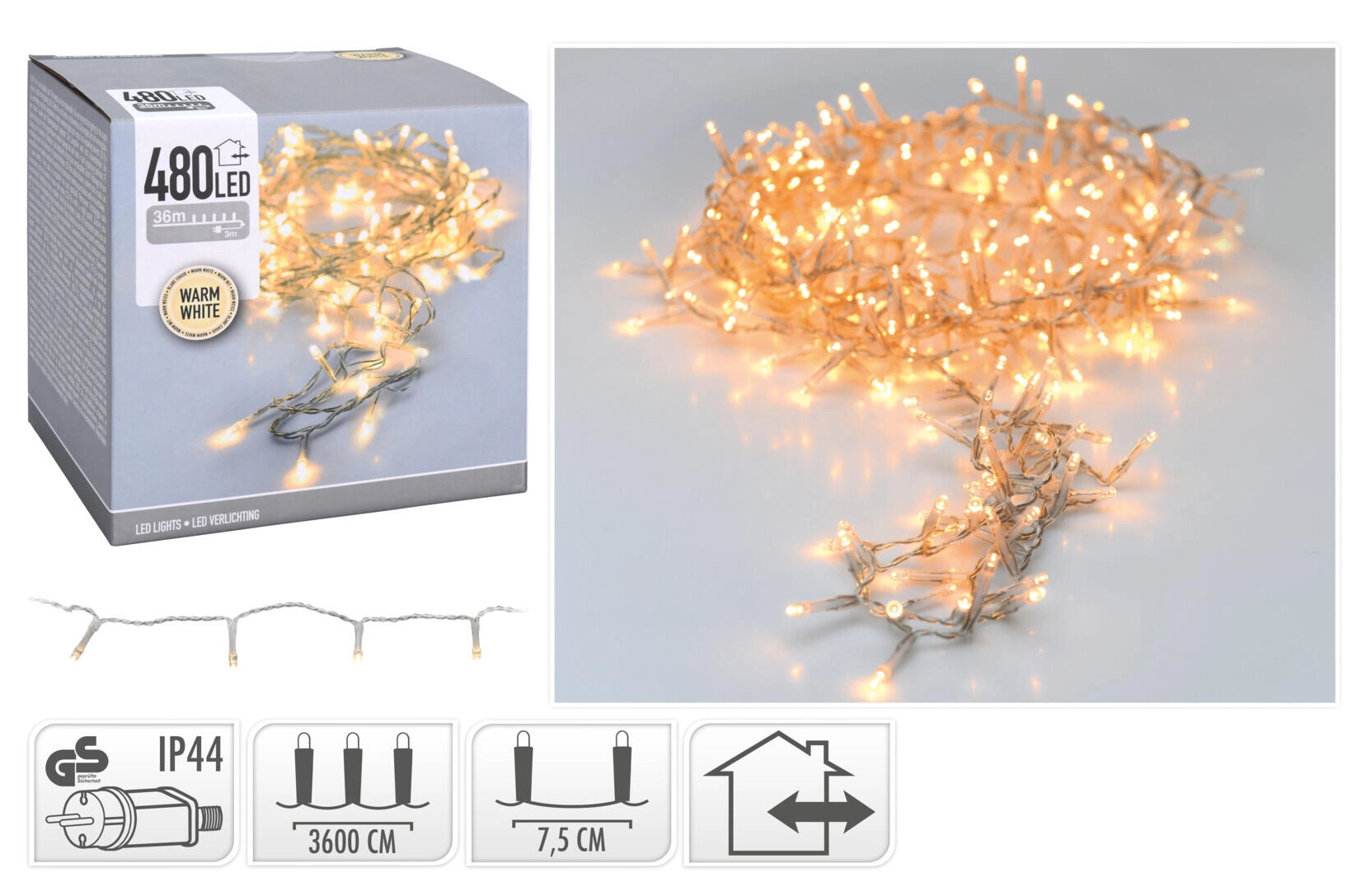 Świąteczny łańcuch LED 36 m, 480 LED, ciepła biel, przezroczysty przewód, IP44