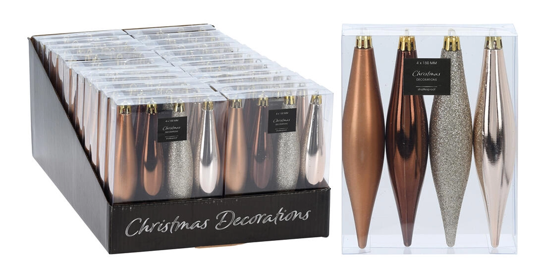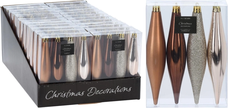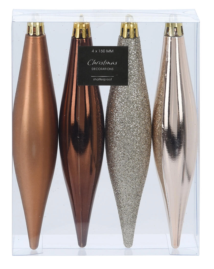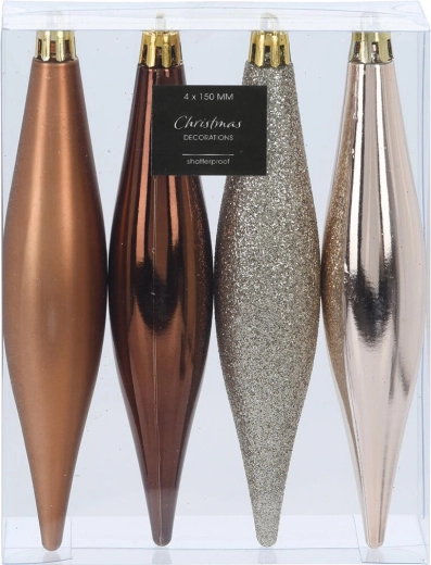 Bombki świąteczne sople 15 cm, mix brązowo-złoty, 4 szt.