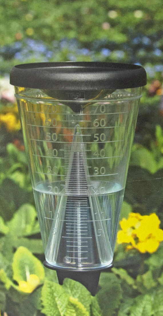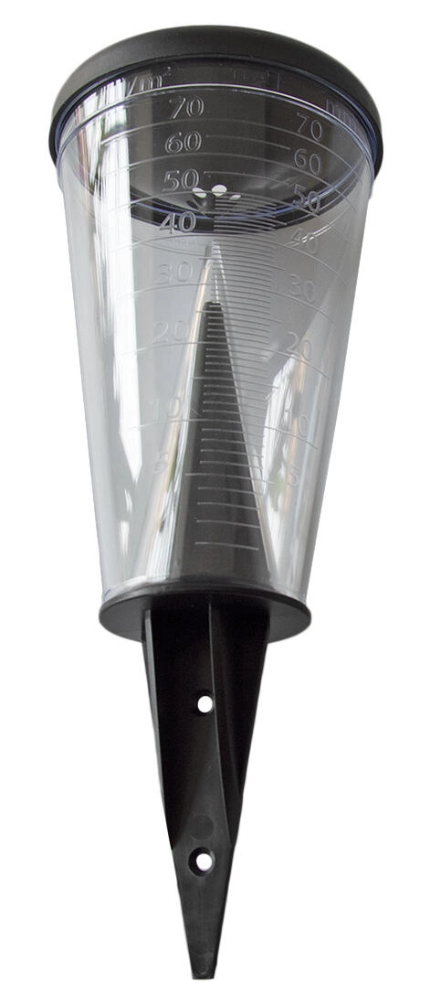 Pokrywka w kształcie lejka chroni przed parowaniem i skutecznie wychwytuje krople deszczu. Praktyczny uchwyt można łatwo wbić w ziemię lub przymocować do tyczki (tyczka nie jest częścią zestawu), co gwarantuje elastyczne ustawienie dla jak najdokładniejszych pomiarów.