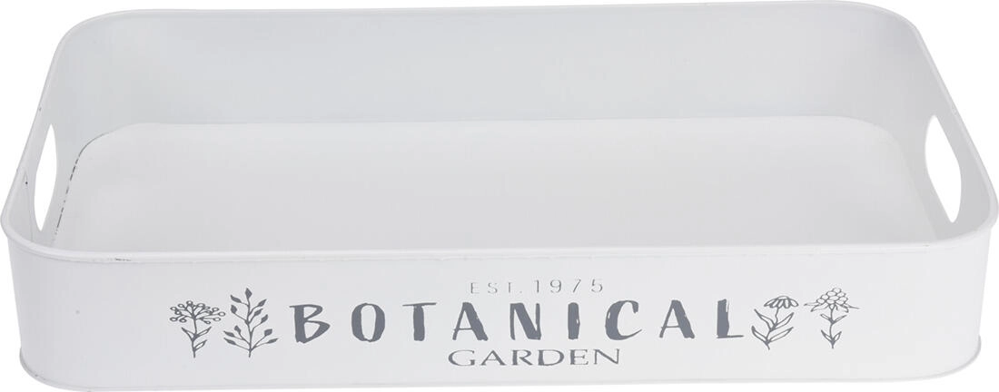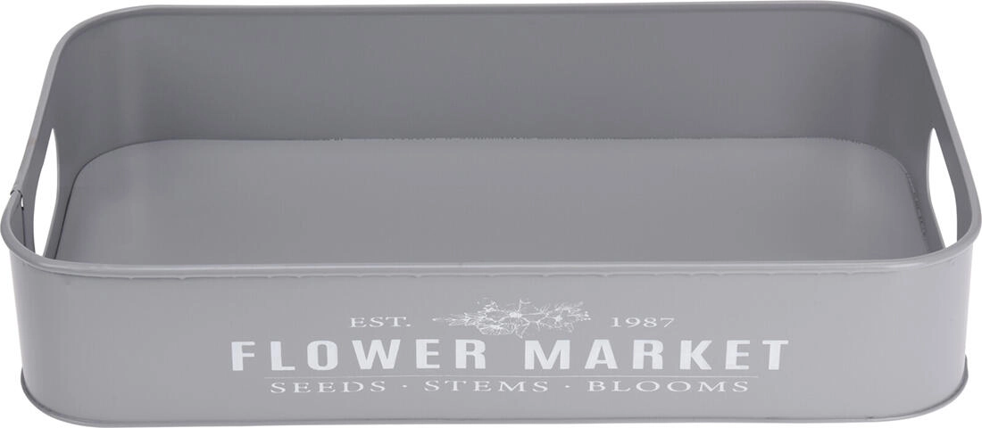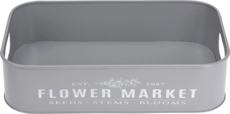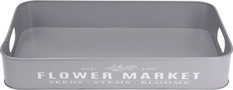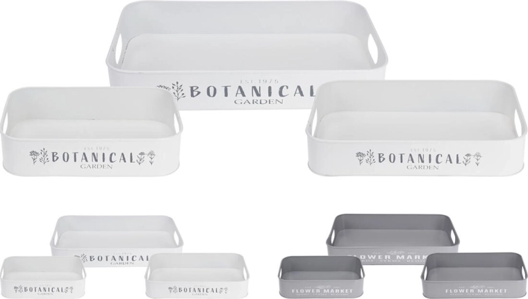 Odkryj uniwersalny zestaw 3 metalowych tac z dyskretnym napisem Botanical Garden / Flower Market, które staną się praktycznym i dekoracyjnym dodatkiem do Twojego domu. Wykorzystasz je do stylowego serwowania przekąsek, jako tace do przechowywania i organizacji lub do aranżowania dekoracji na stole jadalnianym, komodzie czy tarasie.