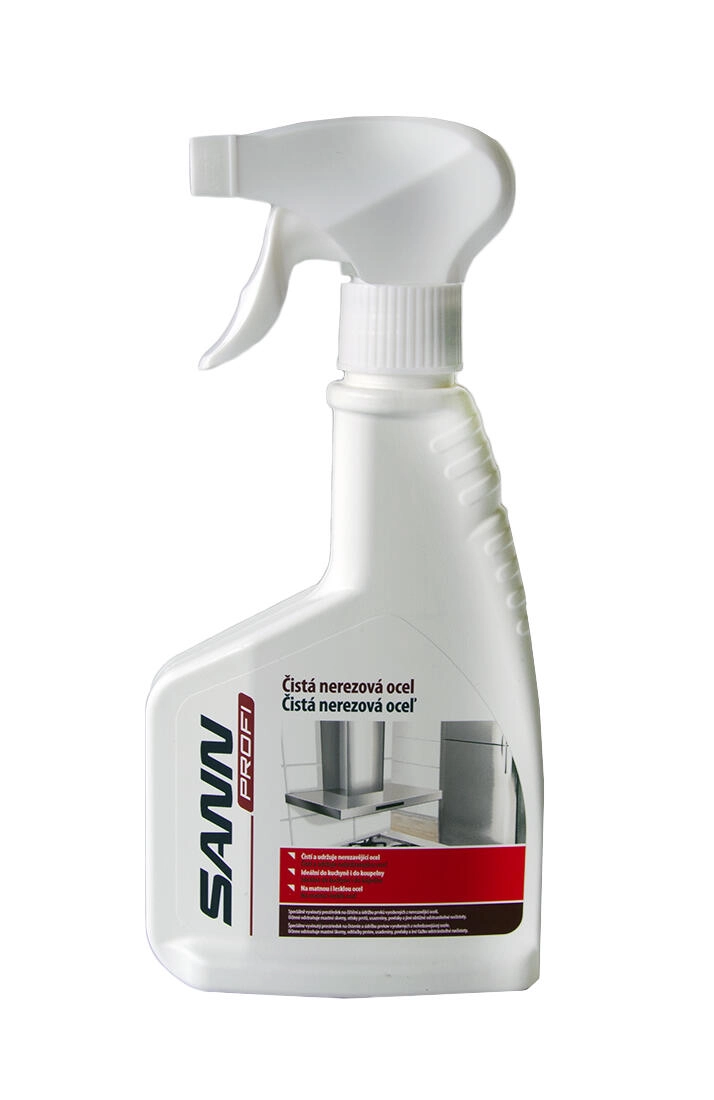 SANN PROFI środek do czyszczenia stali nierdzewnej to specjalnie opracowany preparat do codziennego czyszczenia i pielęgnacji powierzchni ze stali nierdzewnej w domu i w zastosowaniach profesjonalnych. Szybko i skutecznie usuwa tłuste plamy, odciski palców, osady oraz uporczywe zabrudzenia, pozostawiając powierzchnie bez smug i z przywróconym naturalnym połyskiem.
