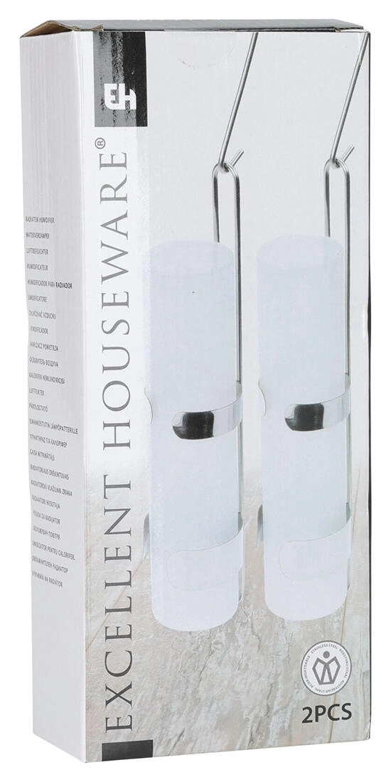 Praktyczny okrągły nawilżacz na grzejnik o pojemności 325 ml ze szkła i stali nierdzewnej skutecznie zwiększa wilgotność powietrza w sezonie grzewczym. Pomaga usunąć suche i drażniące powietrze w pomieszczeniu, poprawia warunki klimatyczne w mieszkaniu i domu oraz przyczynia się do bardziej komfortowego oddychania. Opakowanie zawiera 2 sztuki do zastosowania w kilku pomieszczeniach lub na większej przestrzeni.