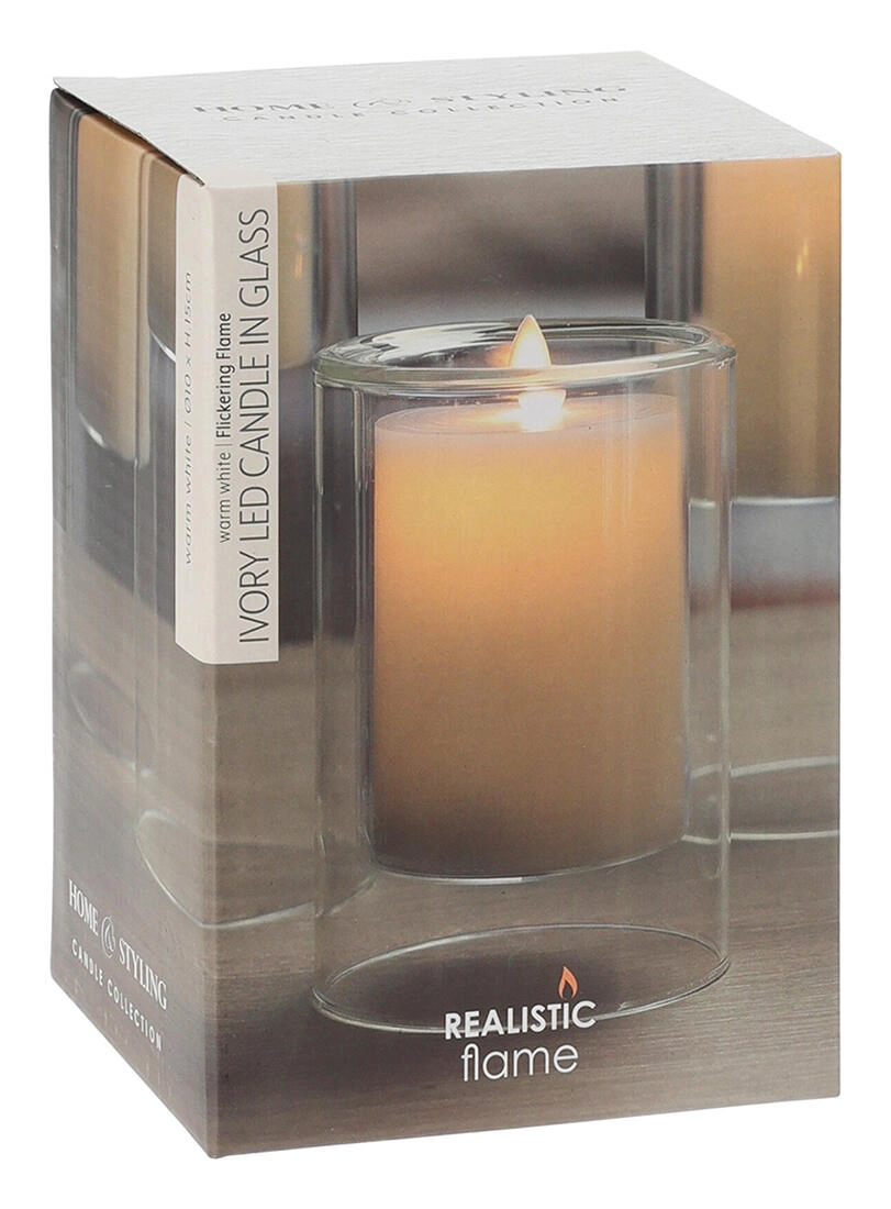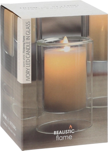 Stwórz przytulną atmosferę w domu dzięki eleganckiej LED świecy w szkle w odcieniu Ivory. Realistyczny efekt migoczącego płomienia oddaje urok prawdziwej świecy bez dymu, sadzy i ryzyka otwartego ognia.